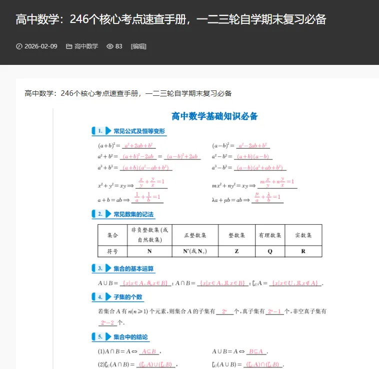 针对这些失分点,翻看我们的《2026高考246个核心考点速记手册》,该手册将高中三年考点浓缩为100页,每个考点标注考频和难度,帮你快速定位知识漏洞。