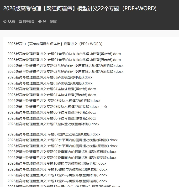 为了帮助大家顺利度过高原期,我们整理了 《2026高考冲刺三件套》电子版资料,包含: