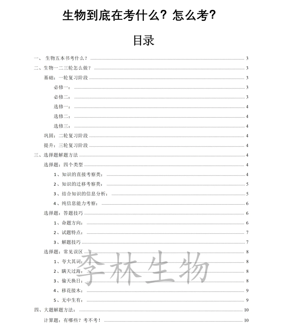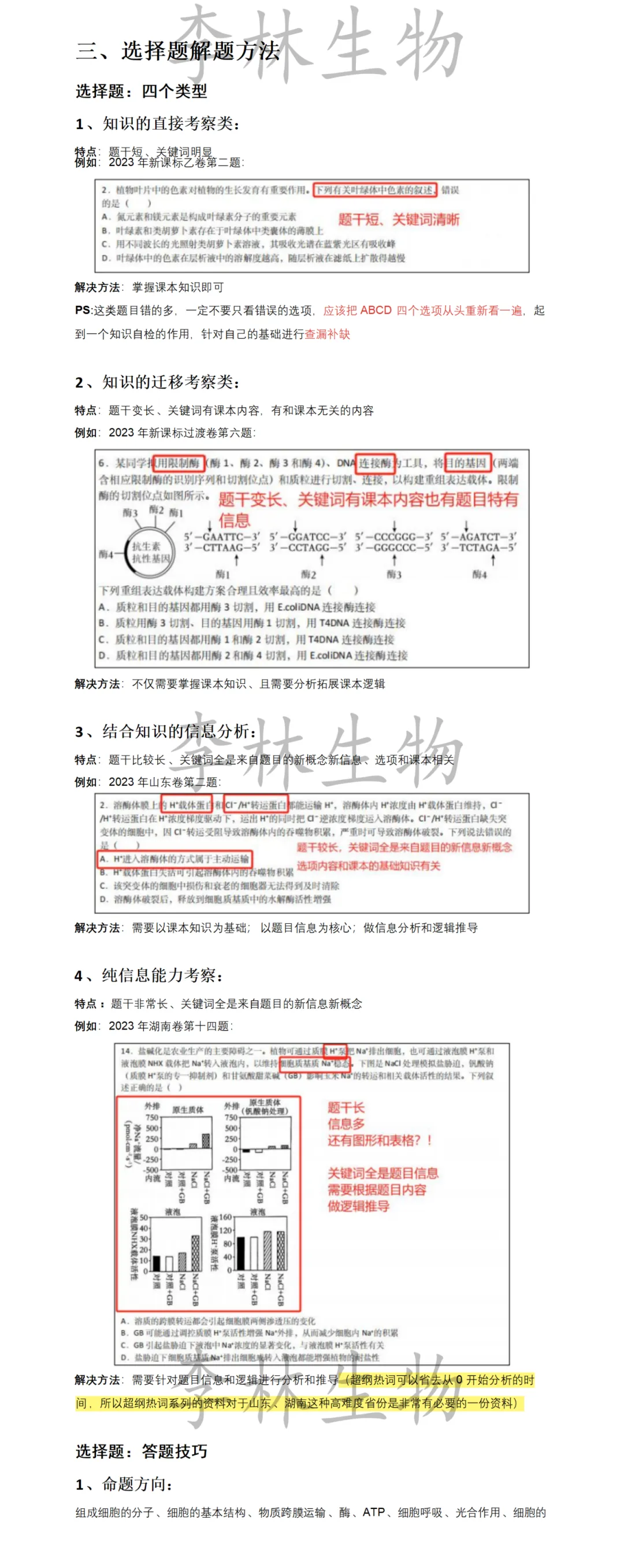 这份资料帮大家归纳了高考生物常见的解题方法,包括了选择题和大题解题方法,可以扫码添加助教老师领取完整版。