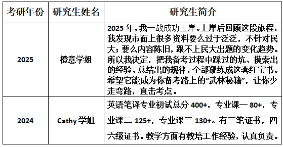 各位报考中央民族大学英语笔译专业的学弟学妹们,大家好!我是橙意学姐,2025届一战上岸中央民族大学英语笔译专业的学姐。带着满满的诚意,我为大家编写了这套2026届民大MTI考研红宝书。今天,我想和大家聊聊这套书的“前世今生”,以及它能为你带来什么。