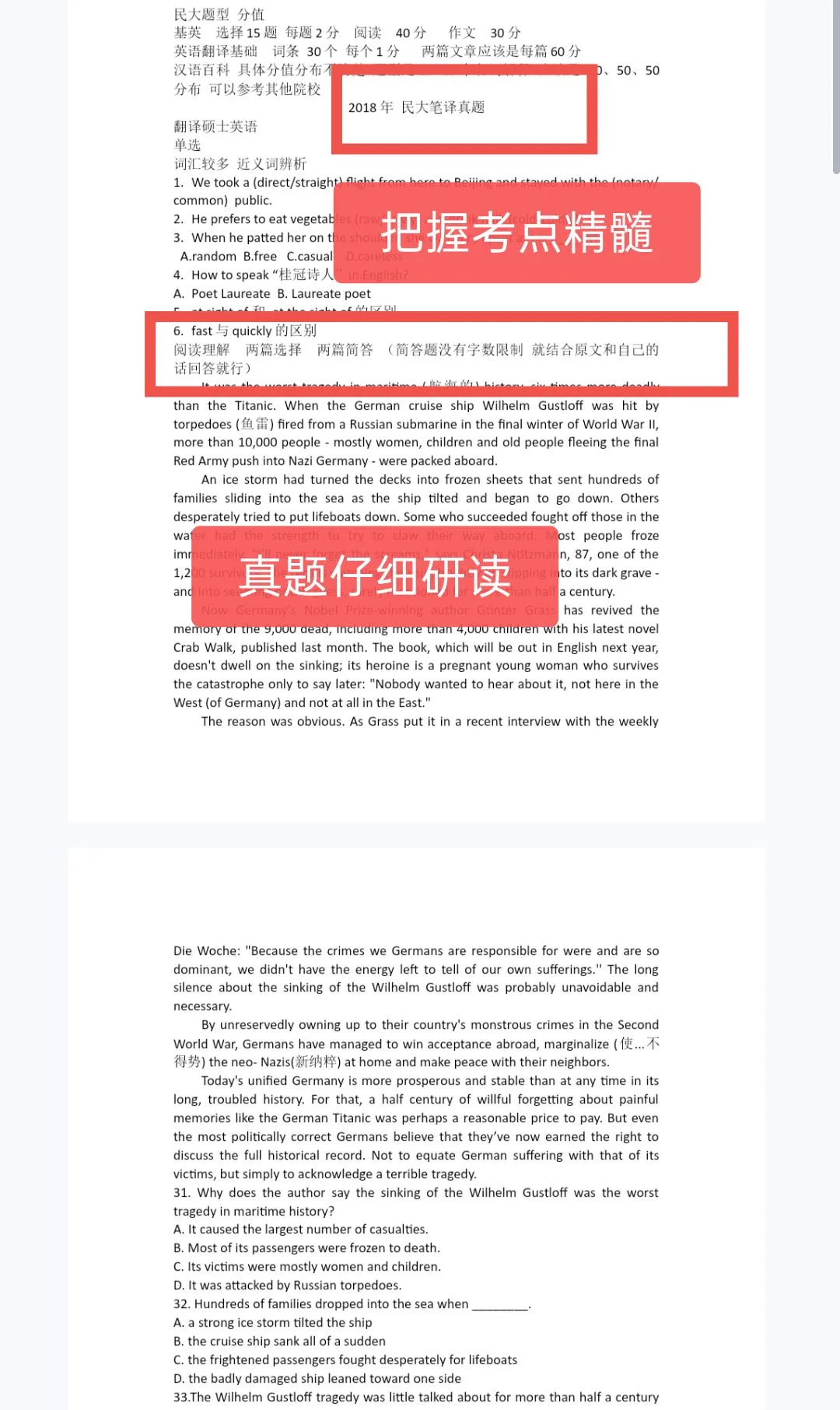 4.真题深度优化:不仅修正了历年真题答案中的错误,还对每一道题进行了重新审视和解析。更重要的是,我总结了每一类题型的考点和命题规律,让你真正把握出题老师的思路。