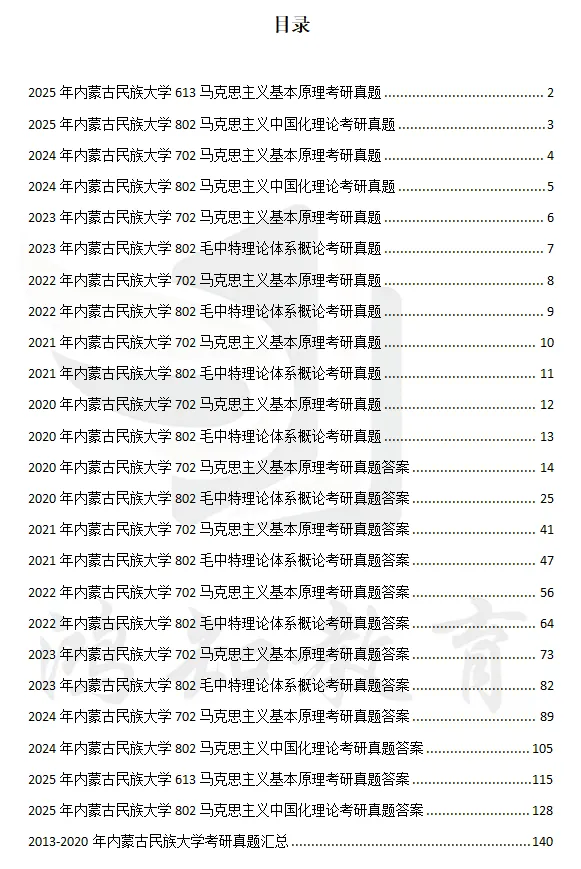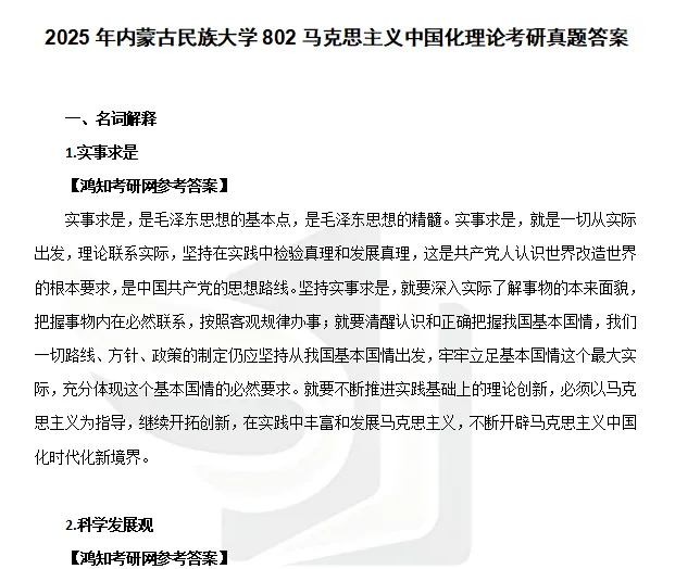 2013-2025年内蒙古民族大学802马克思主义中国化理论考研真题试卷(回忆版)