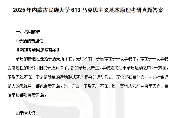 2013-2025年内蒙古民族大学702马克思主义基本原理考研真题试卷(回忆版)