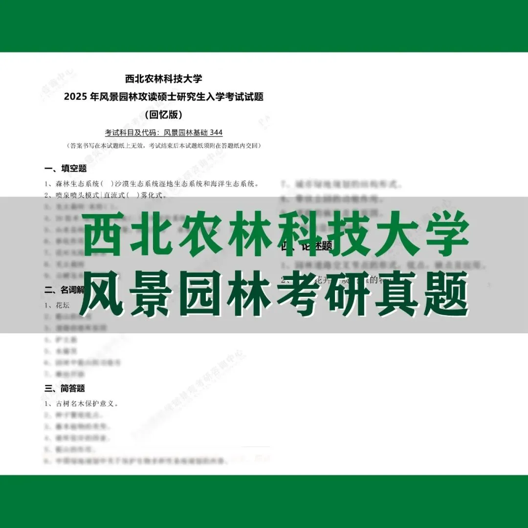 西北农林科技大学风景园林考研历年真题+初试+复试全套资料!