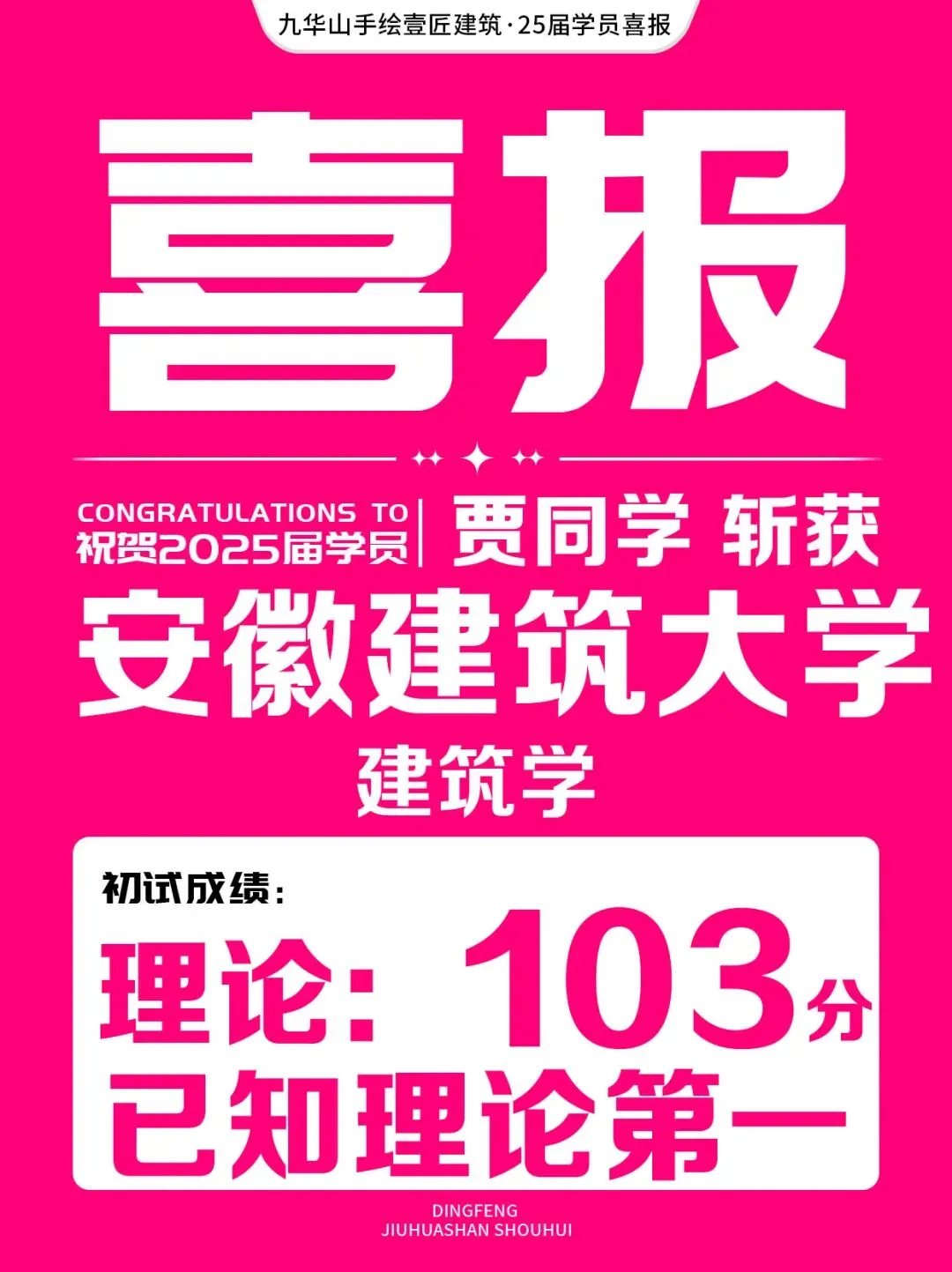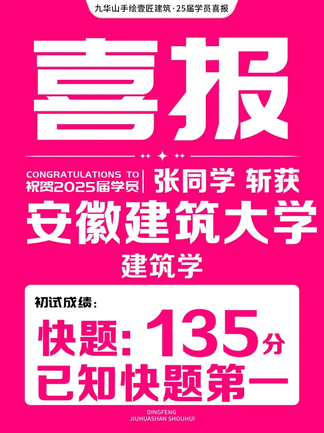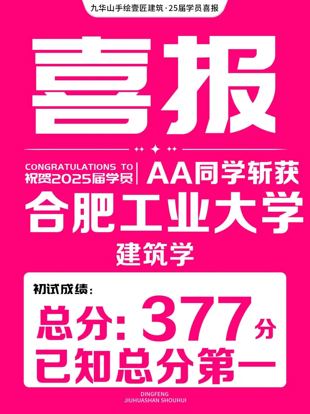 合肥工业大学连续五年包揽各项 第一名 2025年合肥工业大学建筑学全年班陶同学学硕初试总分359分第一名、理论131分第一名,全年班常同学专硕初试总分377分和学员魏同学专硕初试总分377分并列第一名、理论125分第二名,等前几名好成绩。初试合工大建筑学19人进复试12人,上线率63%以上.2024年合肥工业大学建筑学全年班闫学员学硕初试总分407分第一名,快题138分第一名;全程班李同学学硕总分405分第二名,快题134分第三名;虞同学学硕理论130分第一名、快题127分第四名;夏同学学硕快题135第二名);师同学初试专硕理论117分第一名,陶同学初试专硕快题140分第二名。 [2023年 合肥工业大学建筑学最高分总分358分、快题134分 、快题131、130分等高分不断 进复试名单共22席+(不含单科未过线)初试总分320分以上18+席,恭喜九华山手绘军团学员顺利进复试,] (22年初试程同学总分393分前三名快题138分 第一名、136、135高分,理论126分第一名等高分) (21年初试阮学长总分388分第一名,快题133、131高分,理论108高分) (20年初试杨学长总分394分第一名,王学长理论118分第一名,快题134分第二名) (19年初试朱学长快题134分第一名,张学长理论138分第一名,总分最高分马学长380分) (18年合工大建筑录取10人,囊括学硕总分第一、二名、专硕理论第一、二、六名) 安徽建筑大学初试战绩再次爆表到举世无双 连续六年包揽各项 第一名 2025年安徽建筑大学建筑学全年班贾同学专硕初试总分364分第一名,理论103第一名,全年班董同学专硕初试总分351分第二名,张同学初试快题135分第二名,杨同学理论103分并列第一名,专硕前十名学员占6席位,快题130+6席等前几名好成绩。初试安建大建筑23人进复试19人,有若干同学英语未过线,上线率95%以上。 2024年 安徽建筑大学建筑学李同学初试专硕理论89分第一名,快题137分第二名,杜同学初试专硕理论81分第二名,陈同学初试专硕快题132分第三名,周同学初试学硕理论79分第一名等好成绩。 [2023年初试程同学学硕总分362分第一名,快题138分第一名,胡同学总分355分、施同学总分342分拿下前三名;贺: 2023年初试国同学专硕349分第一名,王同学理论107分第一名包摄学硕和专硕总分第一名、快题第一名、理论第一名等优异成绩.] (22年初试邓同学总分381分第一名,管同学快题140分第一名、逯同学理论111分第一名,快题138分第二名等高分)已知包揽安建大建筑初试总分、快题、理论全第一名,包揽总分第一名、第二名、第三名、第四名、第五名、第六名;包揽快题单项前三名、包揽理论单项前三名等优异成绩; (21年初试包揽总分377分、371分、370分前三名,快题136分第一名,理论118第三名;) (20年初试进复试共18席,最高分339分) (19年初试进复试共6席,最高分311分) (18年跨考学员吴同学初试总分352分第一名,快题127分第一名) |