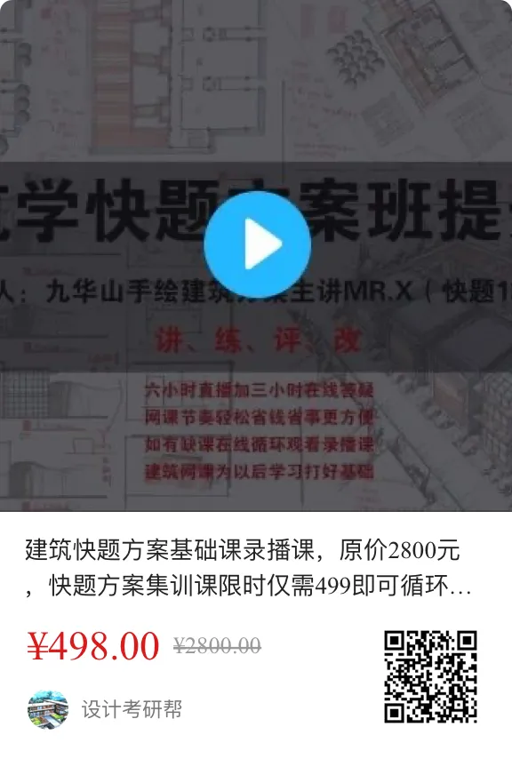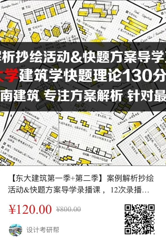 免费发放建筑学考研资料分享,定期更新考研动态,包括但不限于快题手绘技法、大师案例抄绘解析、理论绘图题示范、快题方案真题解析公开课等,有考研相关资源需要的可以识别二维码加群获取。