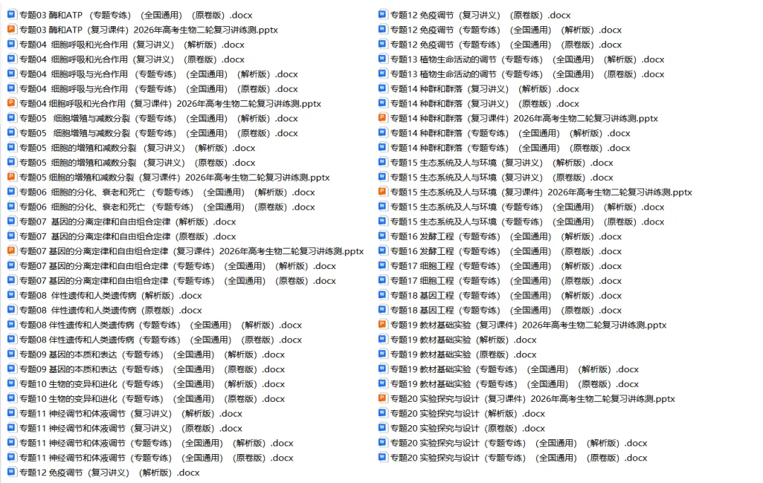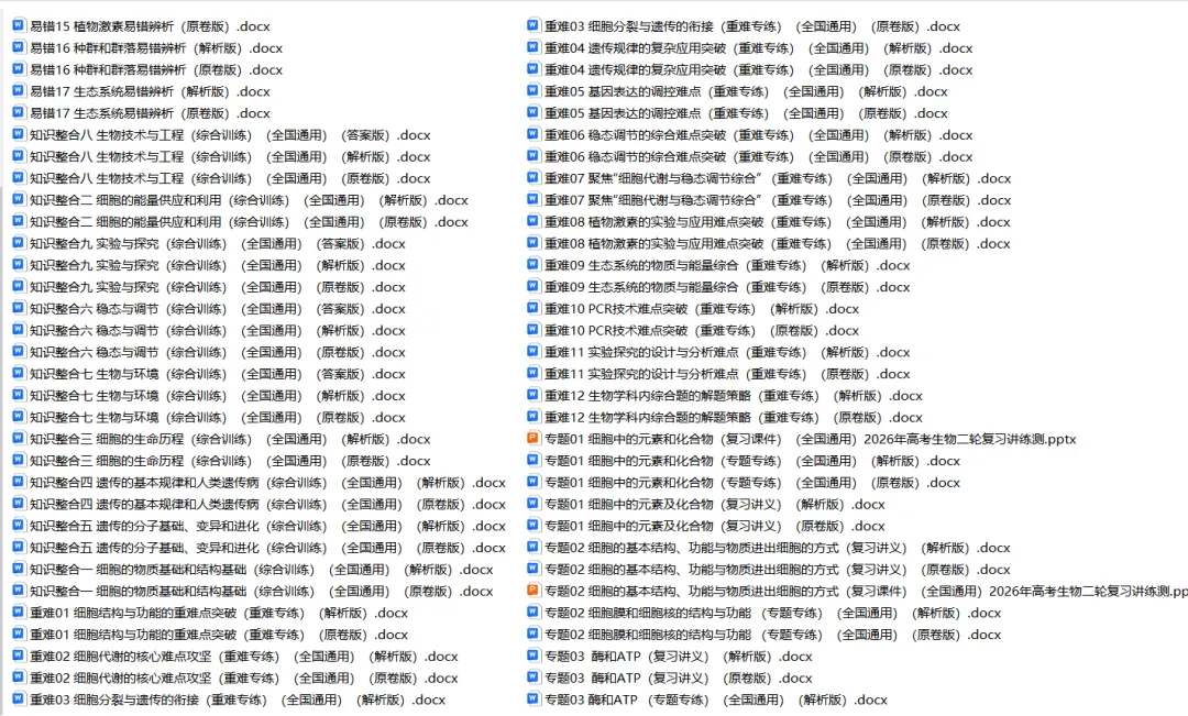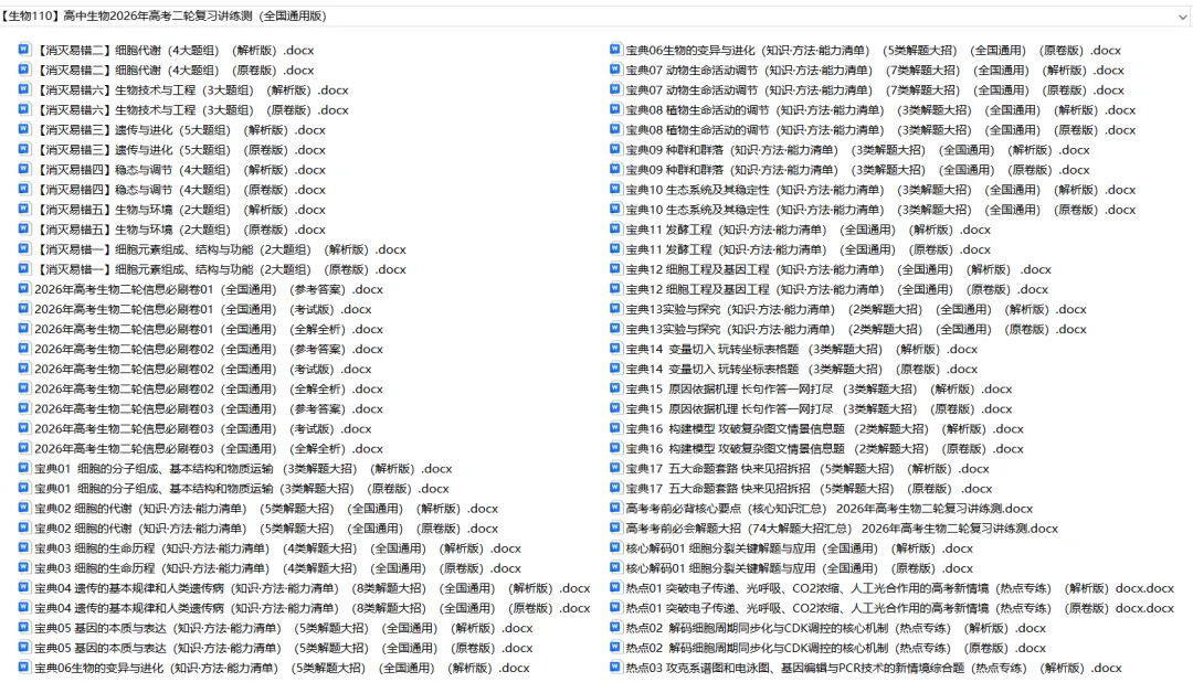 今天小新给同学们整理了高中生物——2026年高考二轮复习讲义+课件+练习(全国通用版)。 家有高中生的家长可以给孩子打印一份。