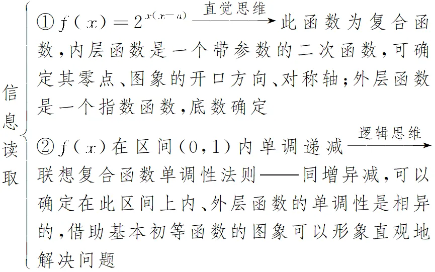 命题分析 本题以复合函数为载体,考查了复合函数的单调性,属于课程学习情境,体现基础性和综合性.通过函数拆解考查学生的转化与化归思想,通过函数简图的绘制和参数的求解考查学生根据法则、公式进行正确运算、变形和数据处理的能力以及对问题或资料进行观察、比较、分析、综合、抽象与概括的能力.