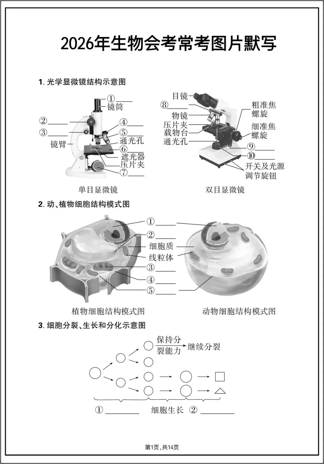 生物会考复习资料丨2026学年复习《生物》常考图片默写,电子版可打印!