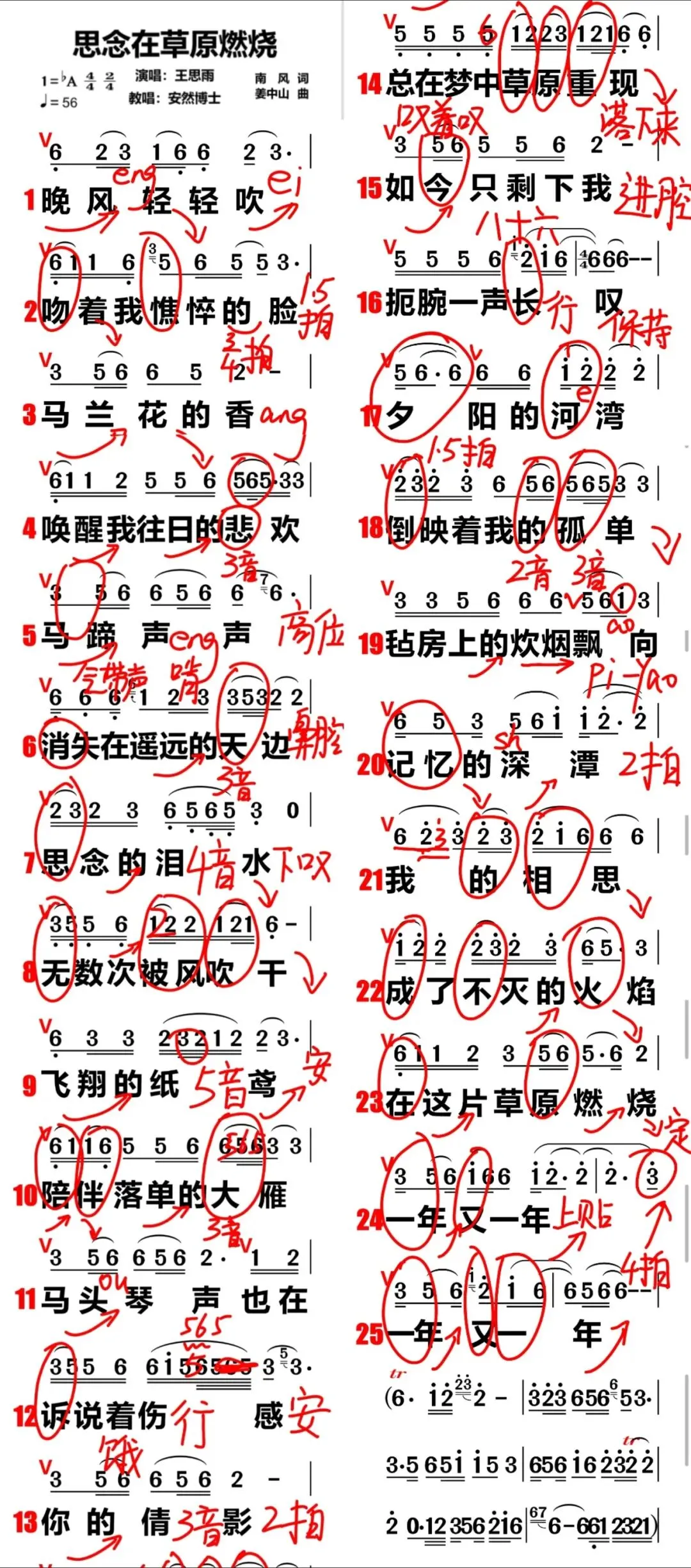 >安然博士教唱歌《思念在草原燃烧》复习资料