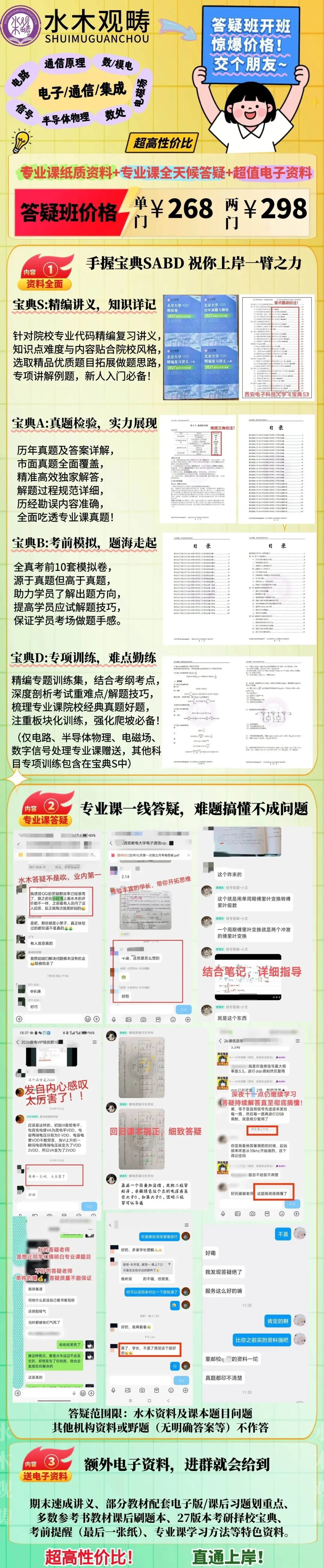 答疑班报名单门仅需268,两门也才298!别犹豫,速速进群找管理员学长学姐报名,今年考研,咱稳稳上岸~