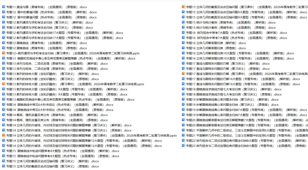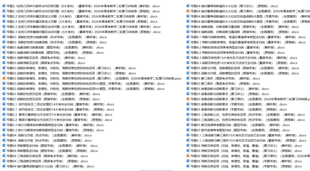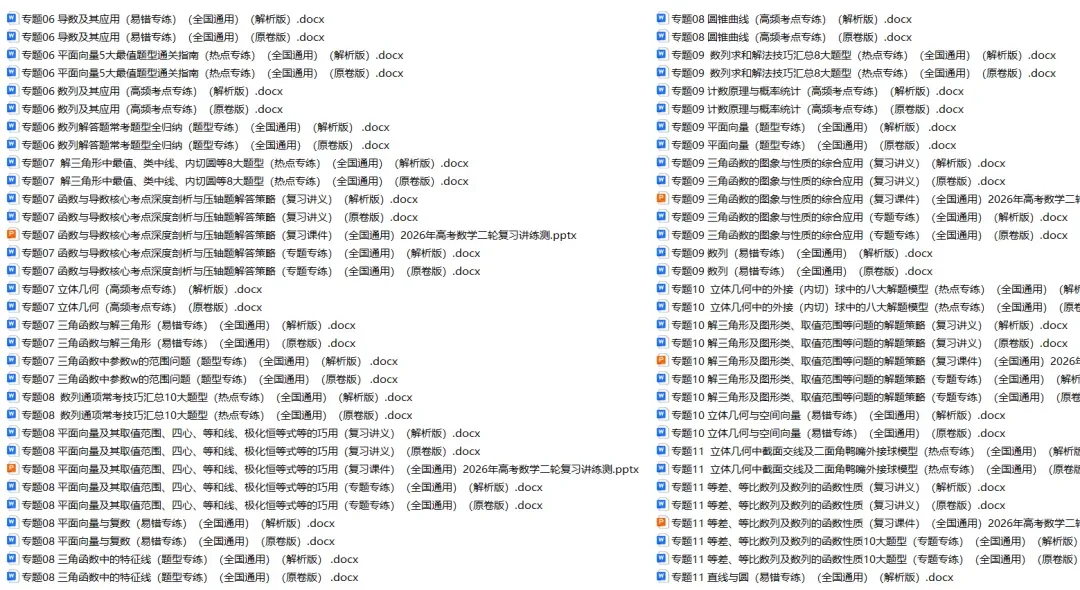 今天小新给同学们整理了高中数学——2026年高考二轮复习讲义+题型练习+综合测试卷(全国通用版)。 家有高中生的家长可以给孩子打印一份。