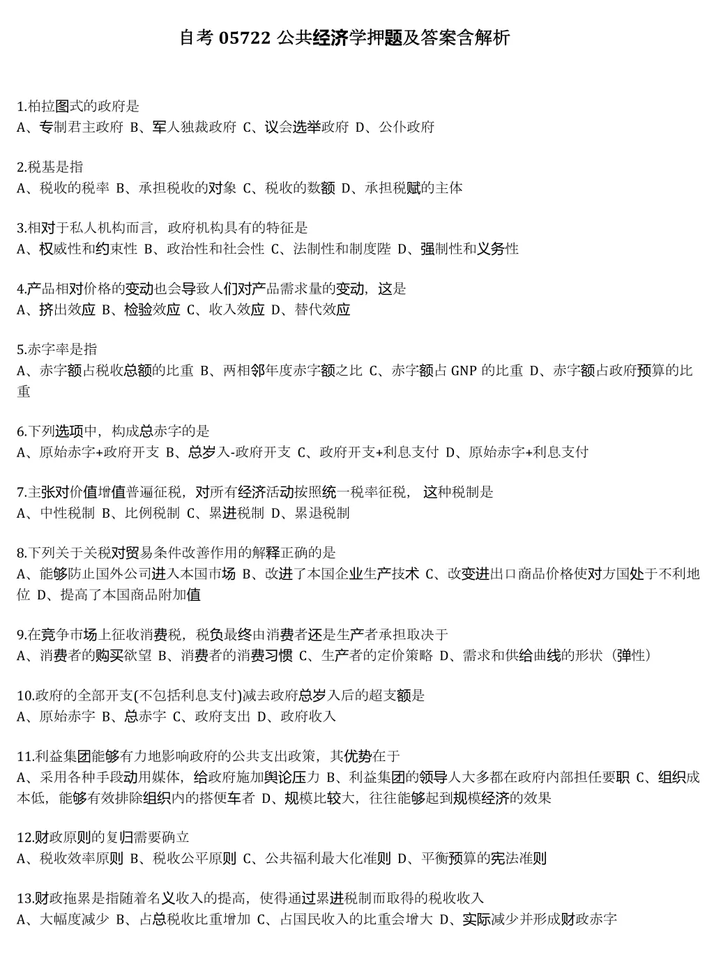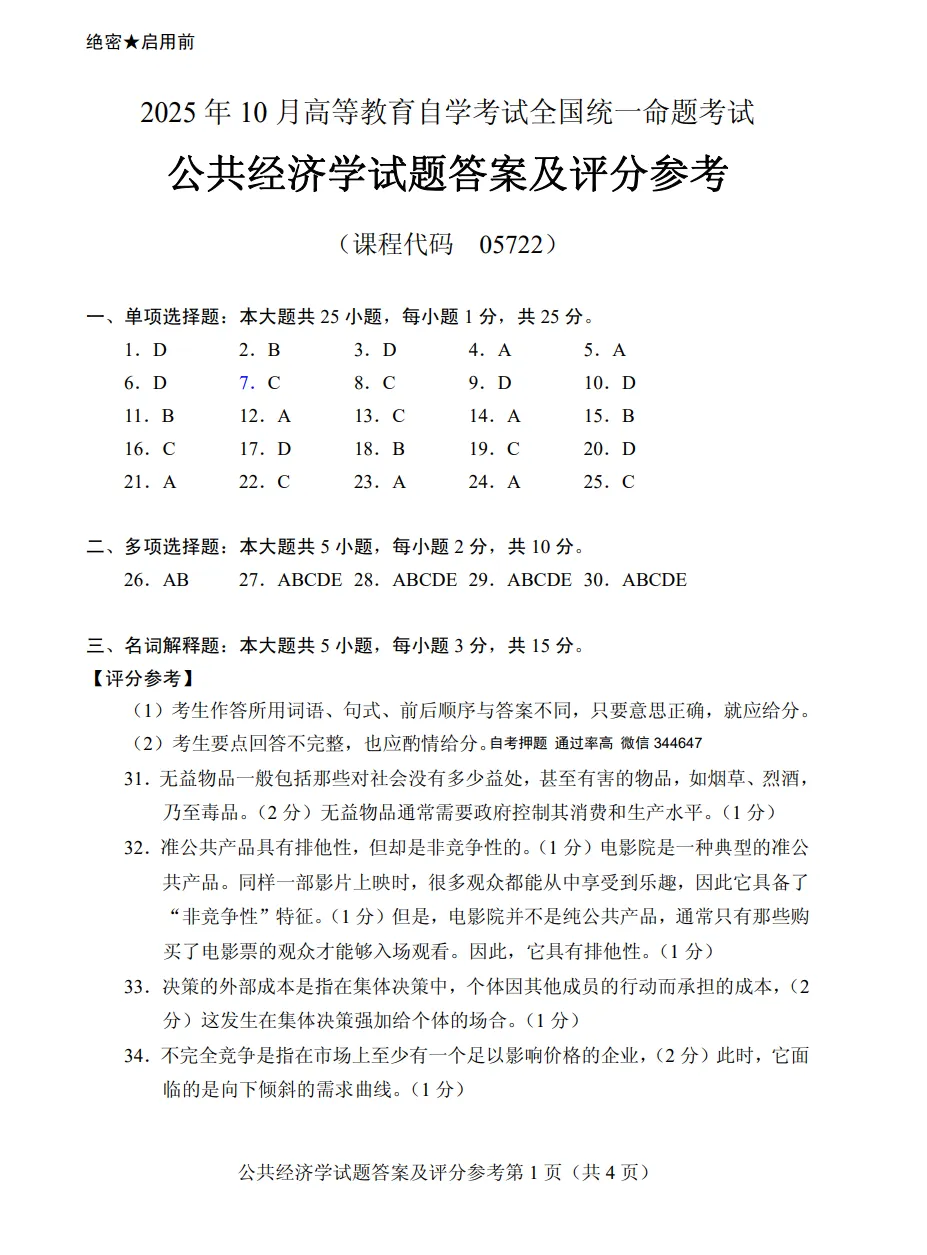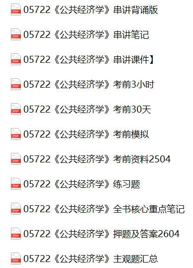 Hi,同学们好!本期给大家分享的复习资料:自考05722《公共经济学》复习资料+历年真题+押题答案+核心重点+串讲课件。