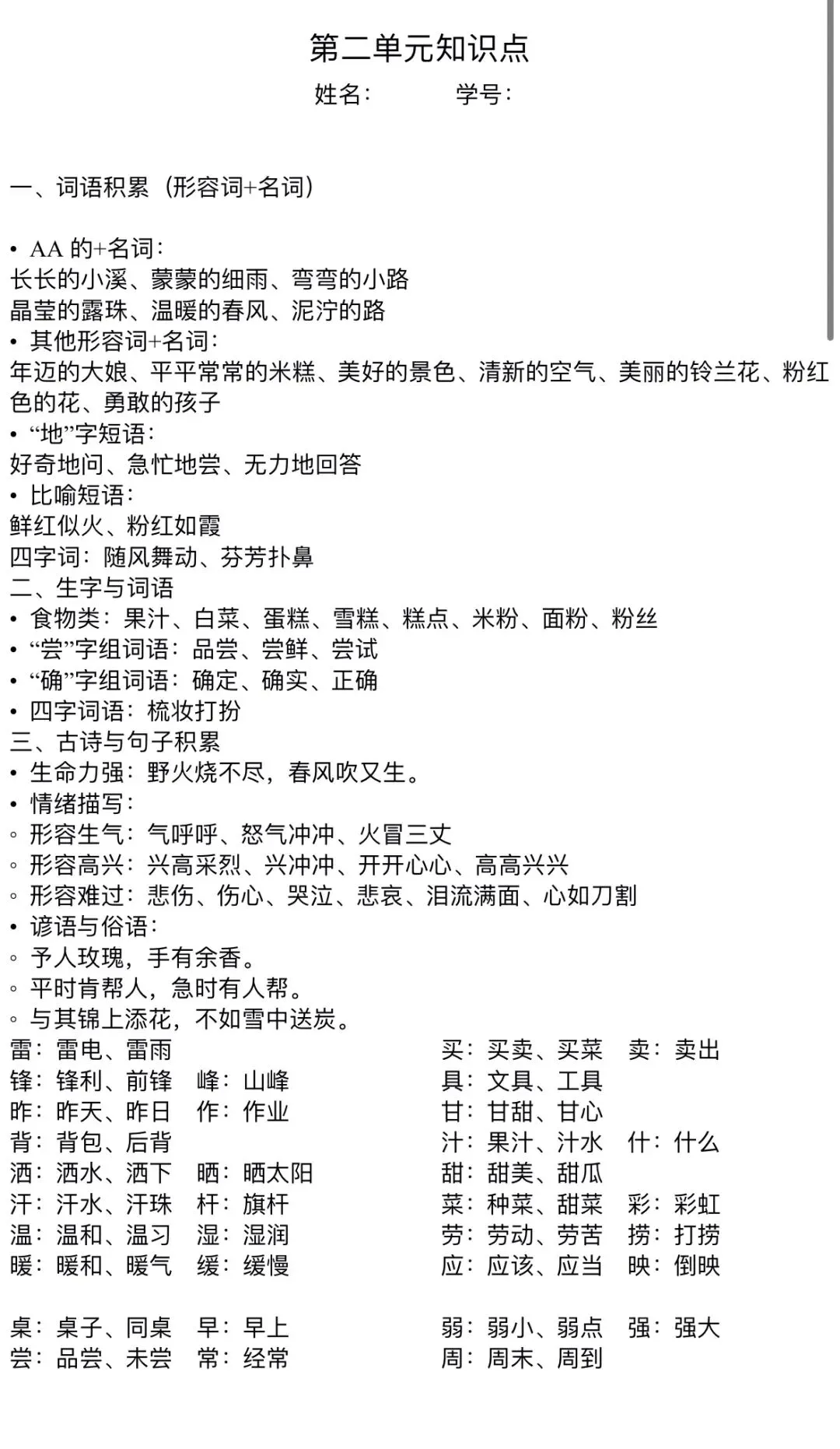 七年级语文|下册期中单元复习资料(字词 + 文言 + 阅读 + 写作)