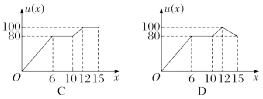 2.某校航模小组进行无人机飞行测试,从某时刻开始15分钟内的速度v(x)(单位:米/分钟)与飞行时间x(单位:分钟)的关系如图所示.若定义“速度差函数”u(x)(单位:米/分钟)为无人机在[0,x]这个时间段内的最大速度与最小速度的差,则u(x)的图象为()