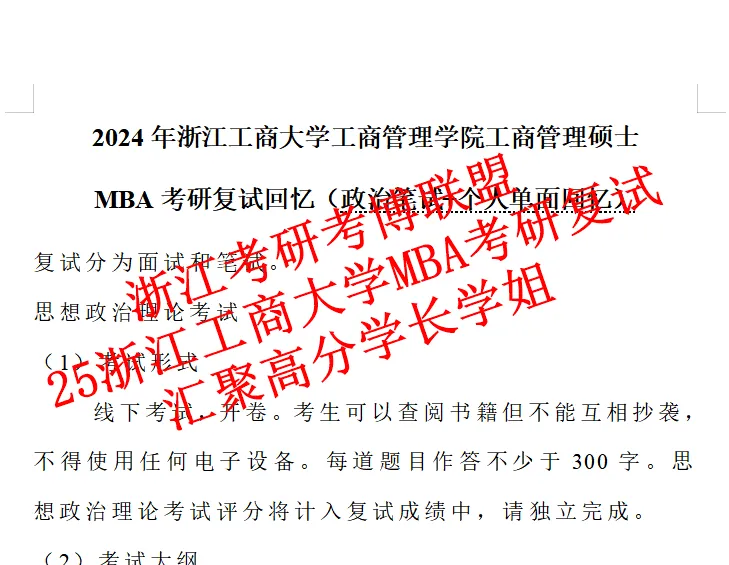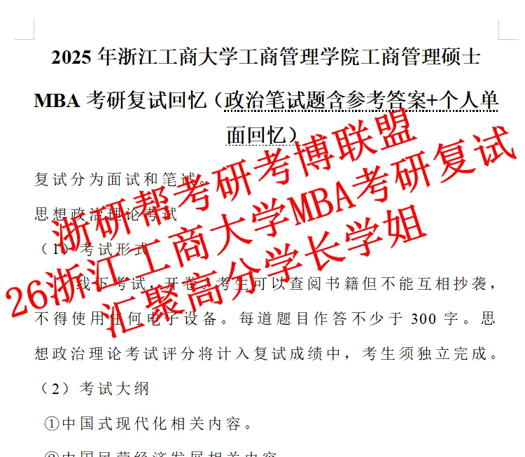 1.2025年浙江工商大学MBA复试高分学长回忆版(政治笔试含答案+个人单面回忆)