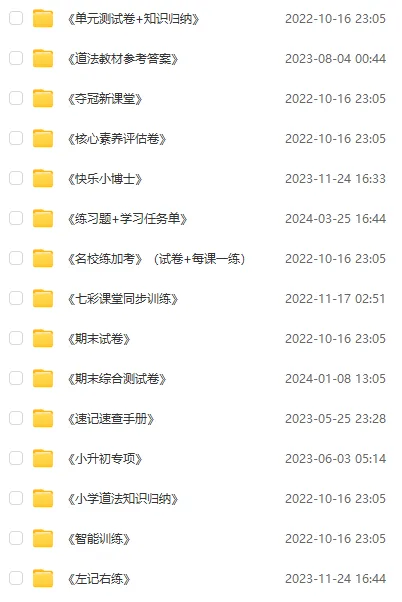 小学道法《预习复习资料》整理汇总(网盘打包下载)1-6年级上下册预习复习必备