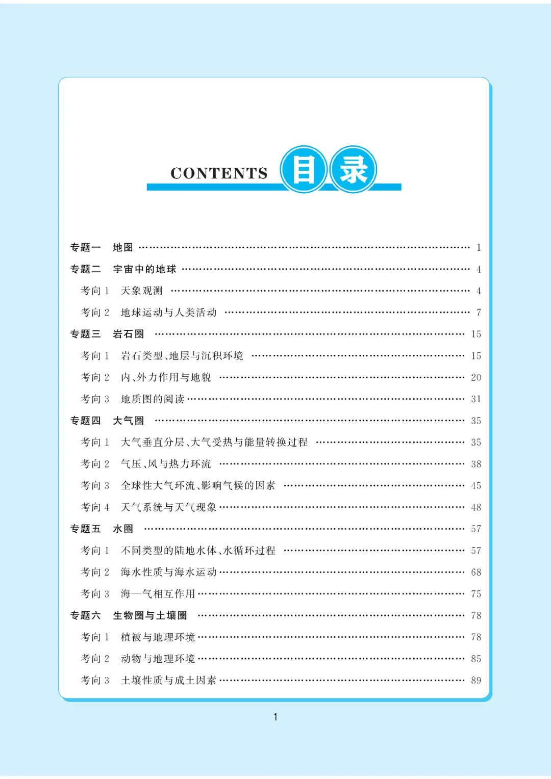 下面我来给大家介绍一下这本书,首先是体例,我们在分类方面采用了大多数学校通用的专题复习分类方案,同时将今年新出现的地理实验和人文地理社会调查设计类题目划分为一个专题,总共划分为十五个大专题;部分大专题又划分不同考向,共32个考向,其中不少考向是我们首创的新提法,比如天象观测、乡村振兴、产城融合、城市更新等。