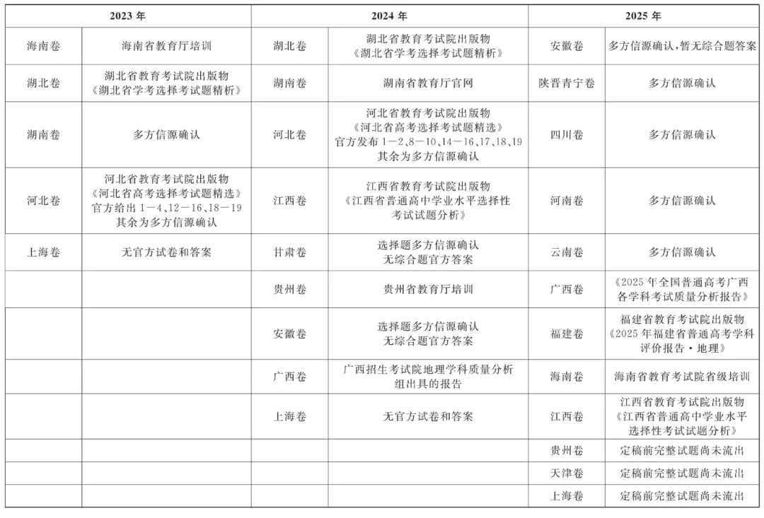对于近三年的高考地理真题,除了定稿前尚未流出的2025年贵州卷、2025年天津卷、23-25年上海卷之外,其它共60套高考地理真题(2023年17套、2024年21套、2025年22套),每套试题均有题目选入,有的试卷全部选入,尽可能地做到将优质试题囊括在内。