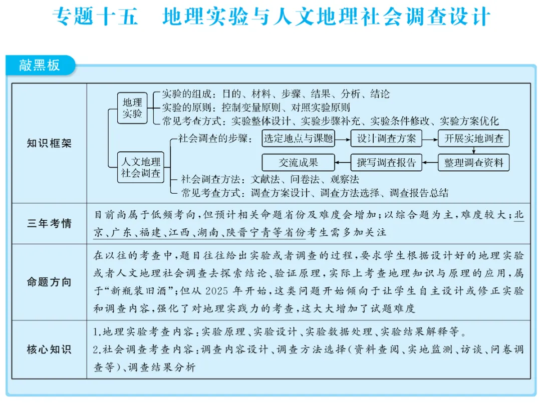 为了帮助学生更好地了解考情考向,以及明晰这一考向的知识框架,我们在前边设置了一个“敲黑板”部分,这一部分包括“知识框架”、“三年考情”、“命题方向”、“核心知识”内容,以便学生能够更好地认识这一考向的意义和价值。