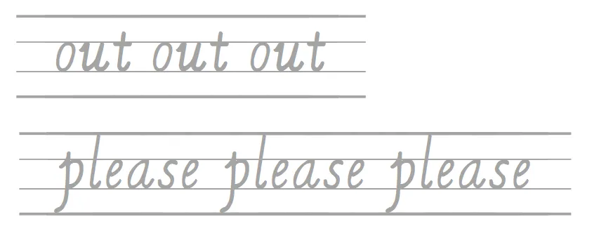 要求:请小朋友们按照正确的书写格式,在英文本上书写下列高频词(每个3遍)注意笔顺和占格哦~