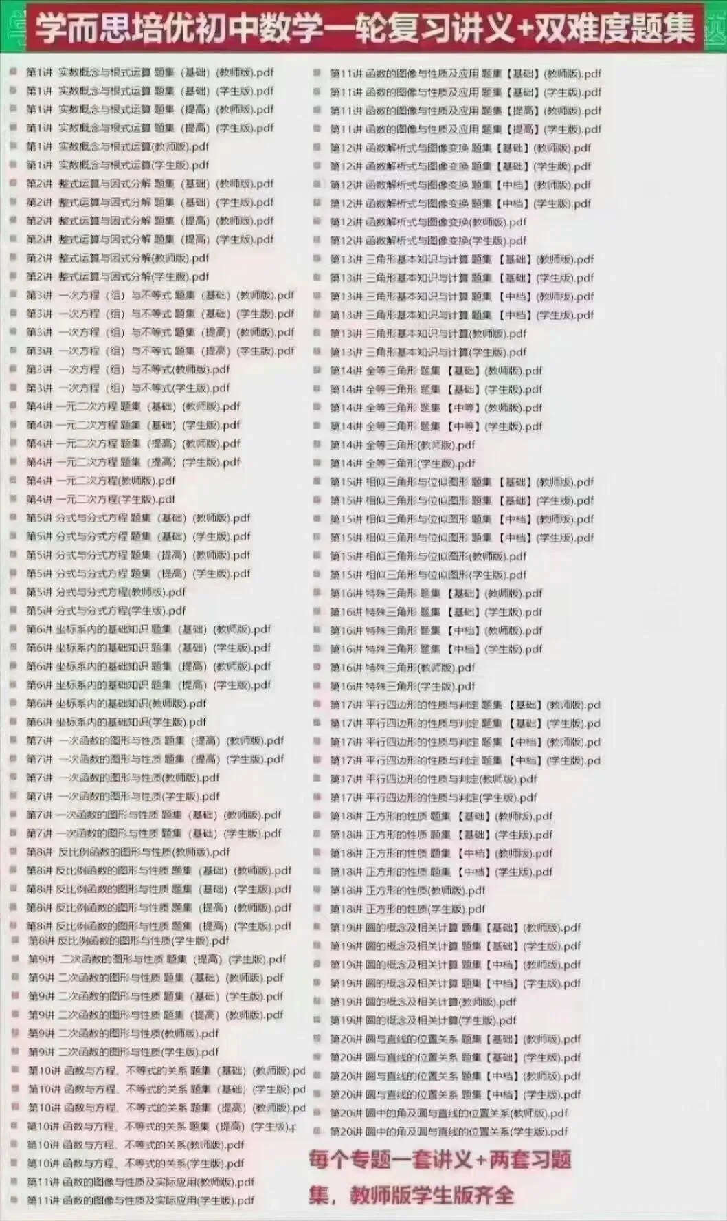 一轮:20讲+20基础题集+20提题高集。全套60个教师版+60个学生版文件。