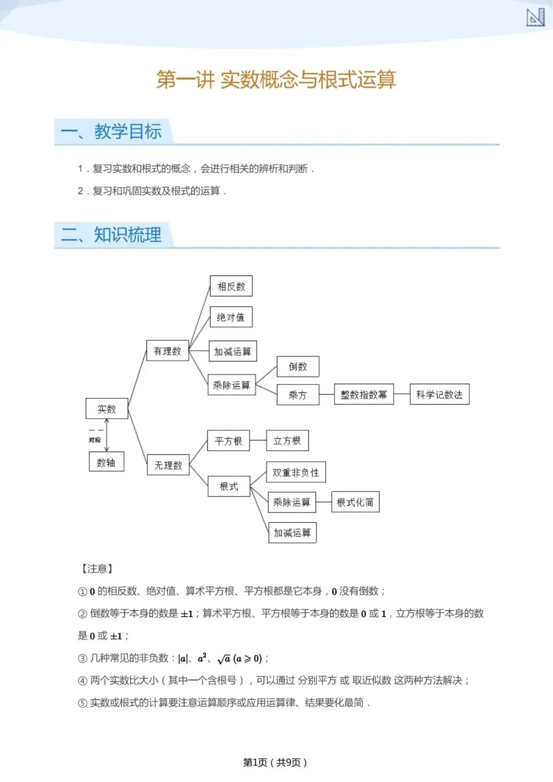 初中数学中考一二轮三总复习讲义,无视频课程
