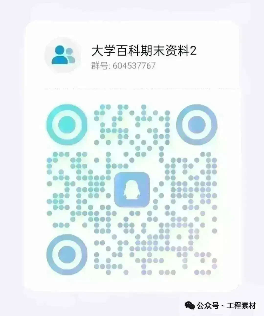 由于公众号每天发文有限,大学复习资料不能全部一次分享,或者有些分享的复习资料已经失效了,之前分享的群1已经满了,因此,我们再建立一个,方便同学们找大学期末复习资料