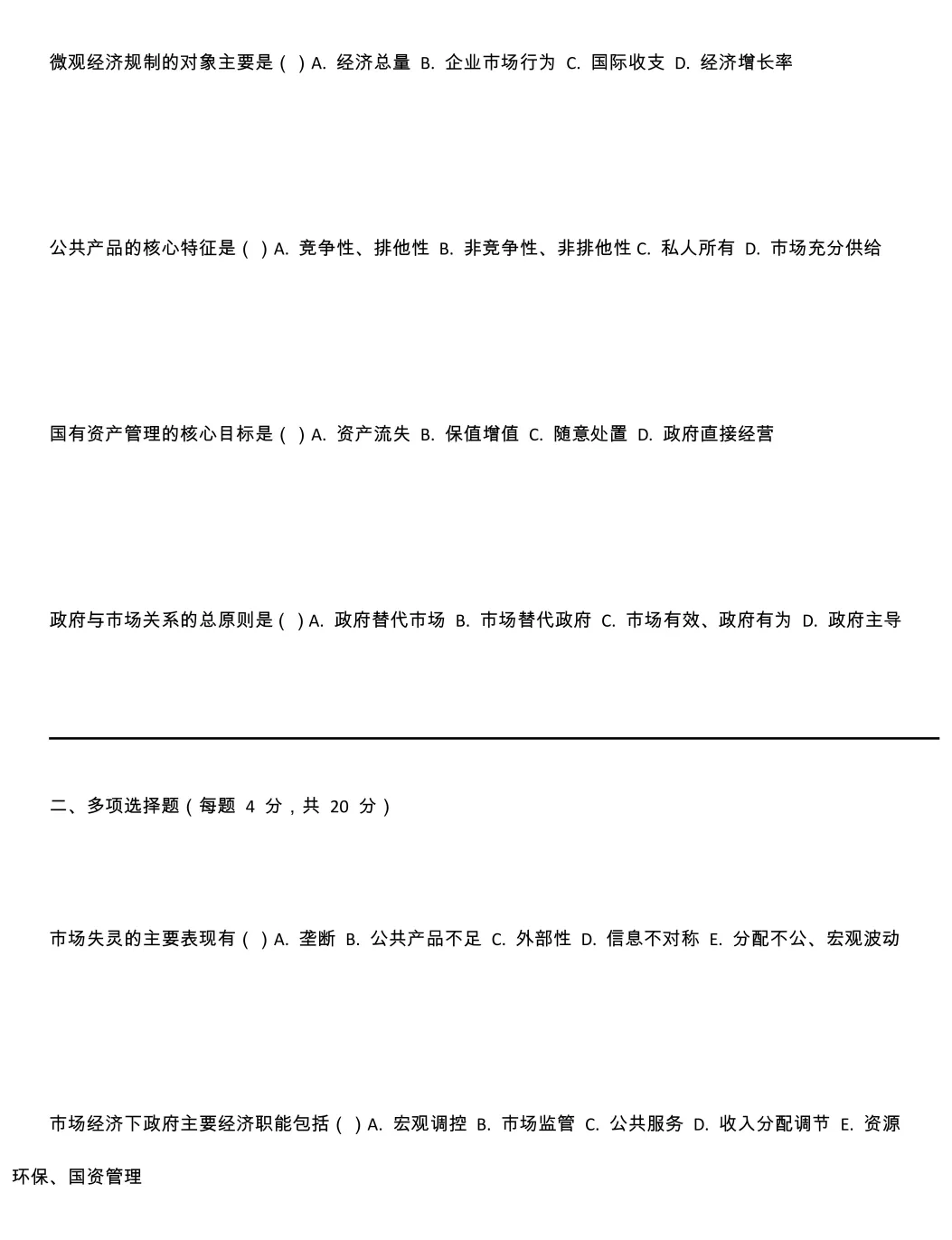 资料二:自考03349《政府经济管理概论》历年真题及答案