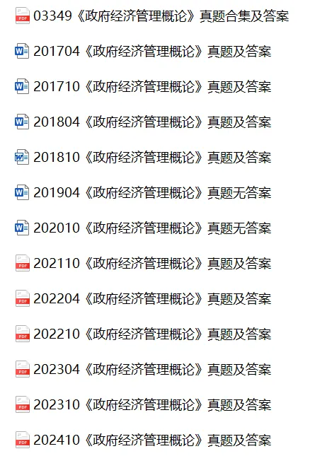 Hi,同学们好!本期给大家分享的复习资料:自考03349《政府经济管理概论 》复习资料+历年真题+考前密训+押题答案+速记宝典。