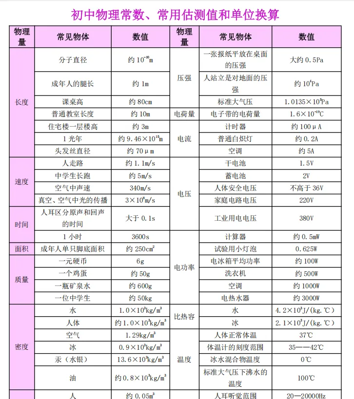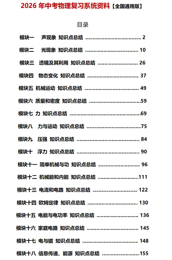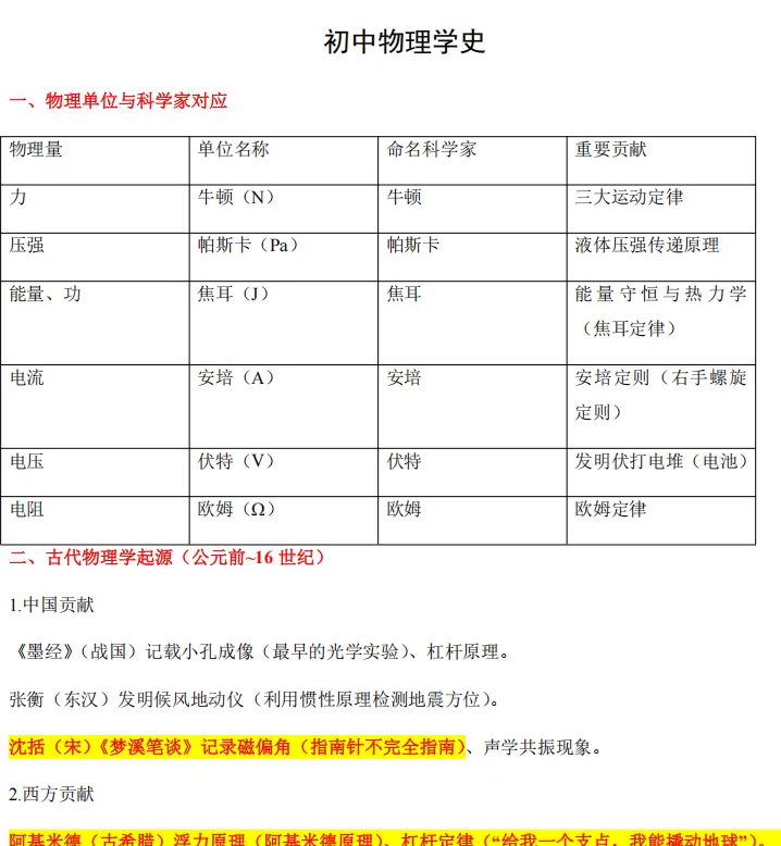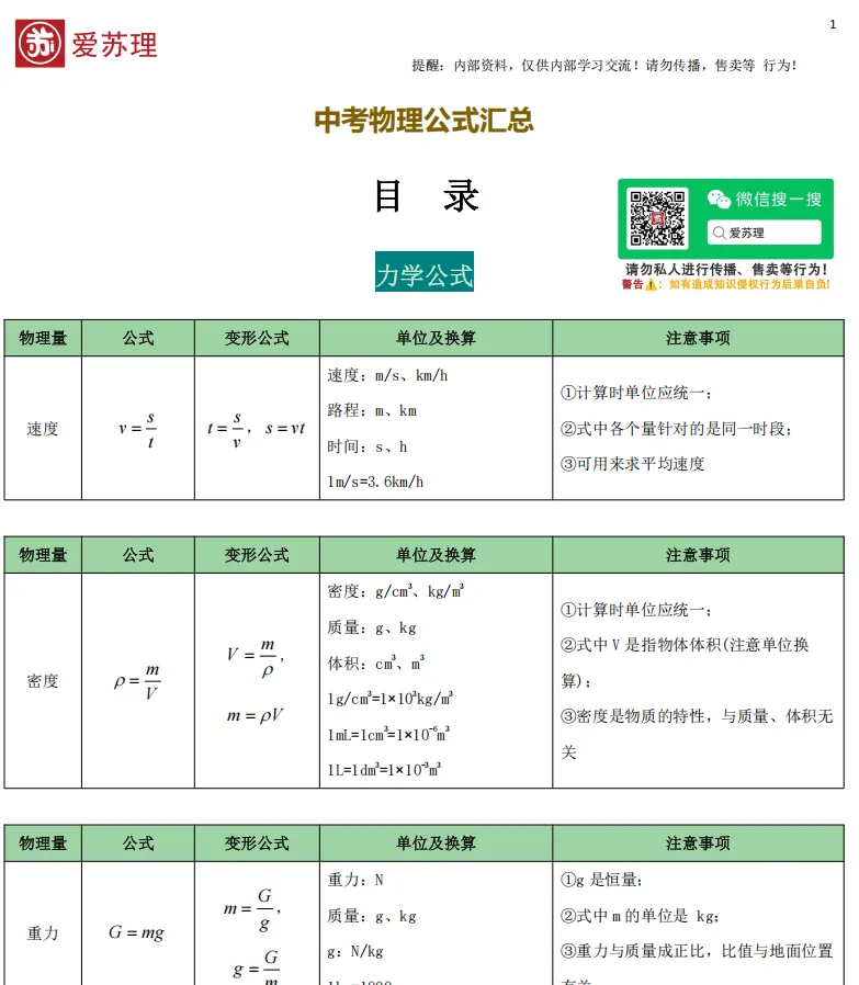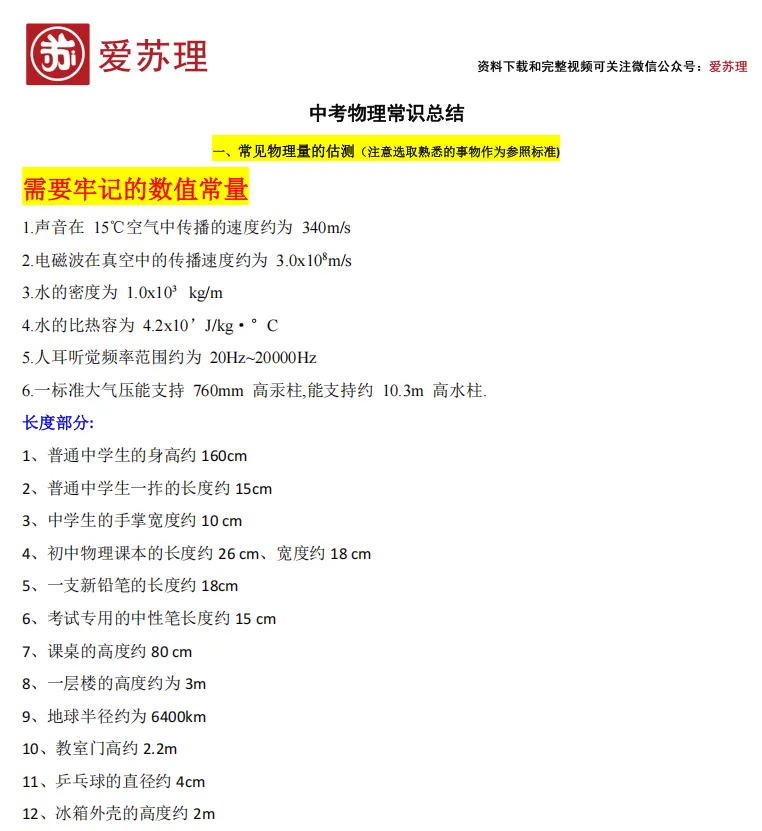 第3部分:【重点】初中物理系统性知识总结(部分展示)