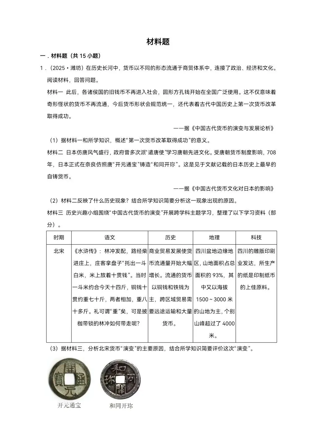 2026年中考历史一轮复习 材料题(含解析)(可下载打印)