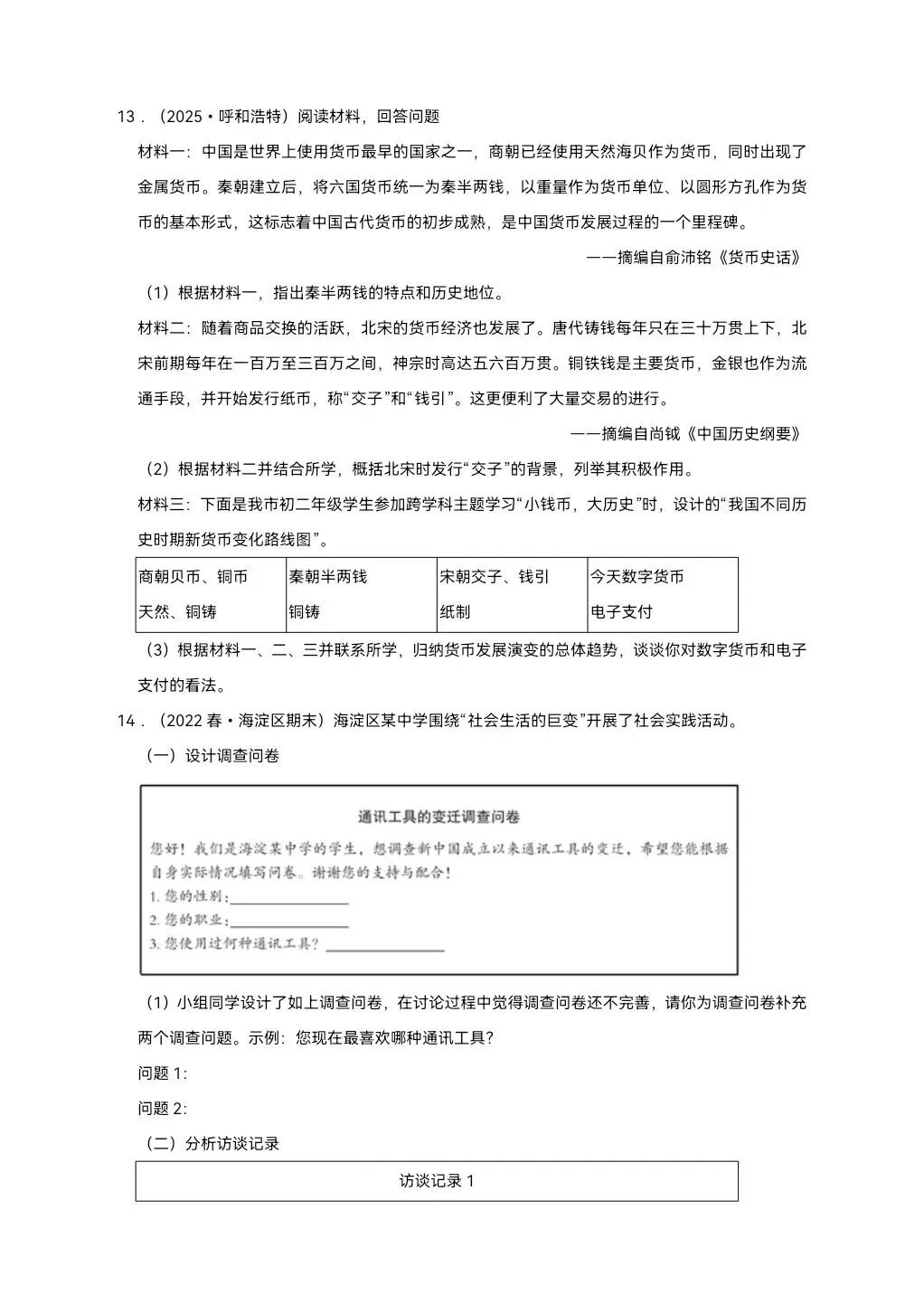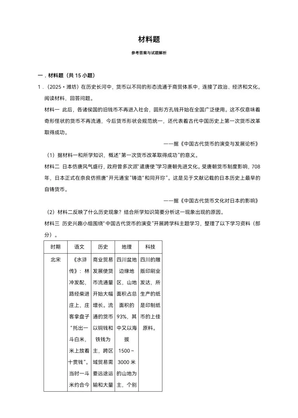 >2026年中考历史一轮复习 材料题(含解析)(可下载打印)