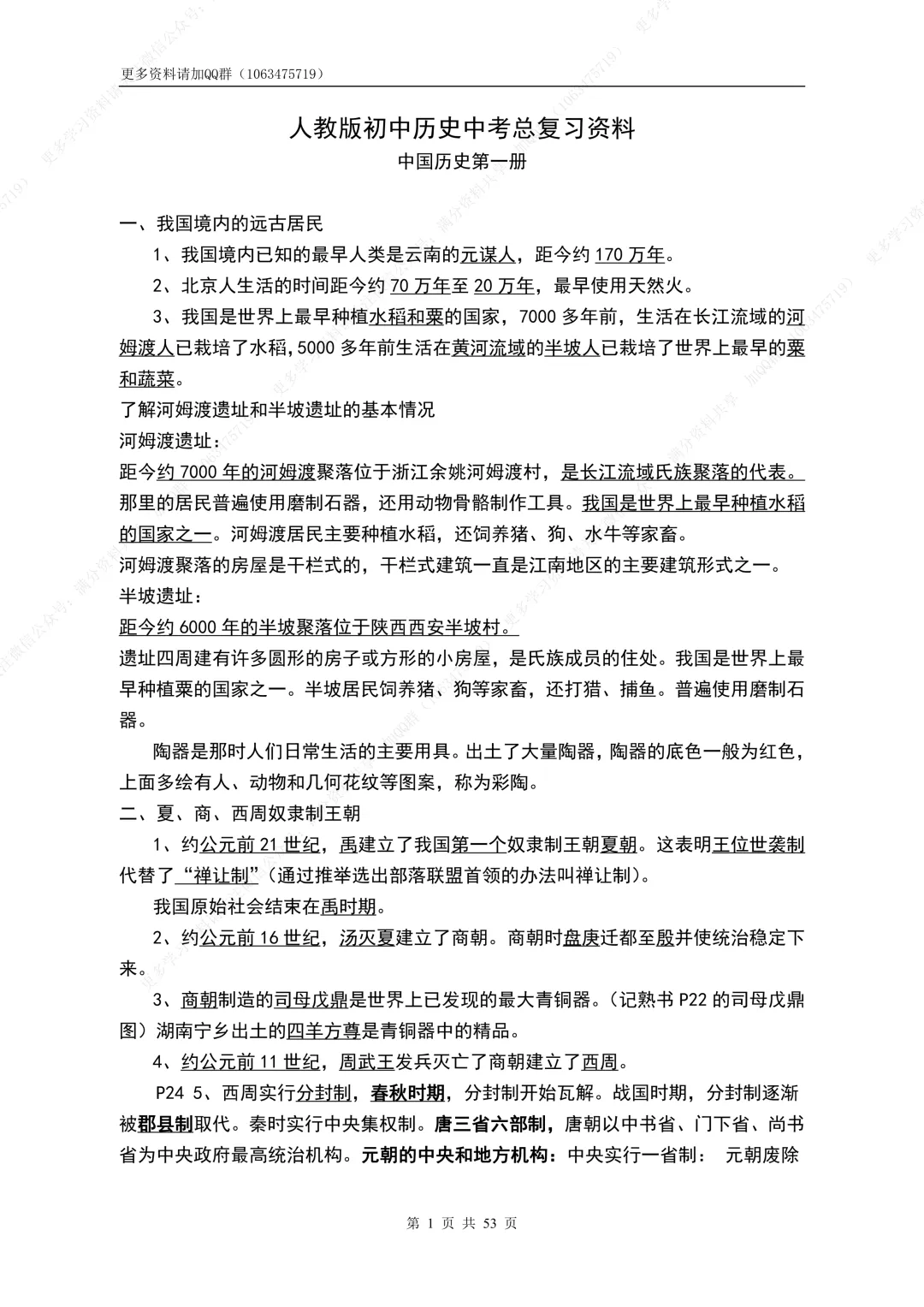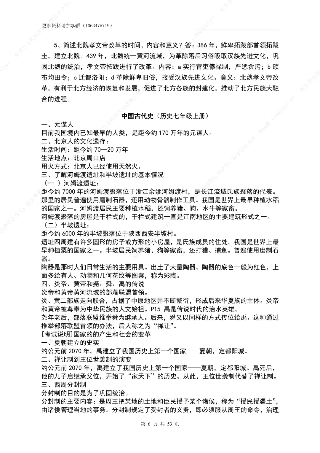 106.【初中历史】初中历史初一七年级上册历史知识点汇总,电子版可打印