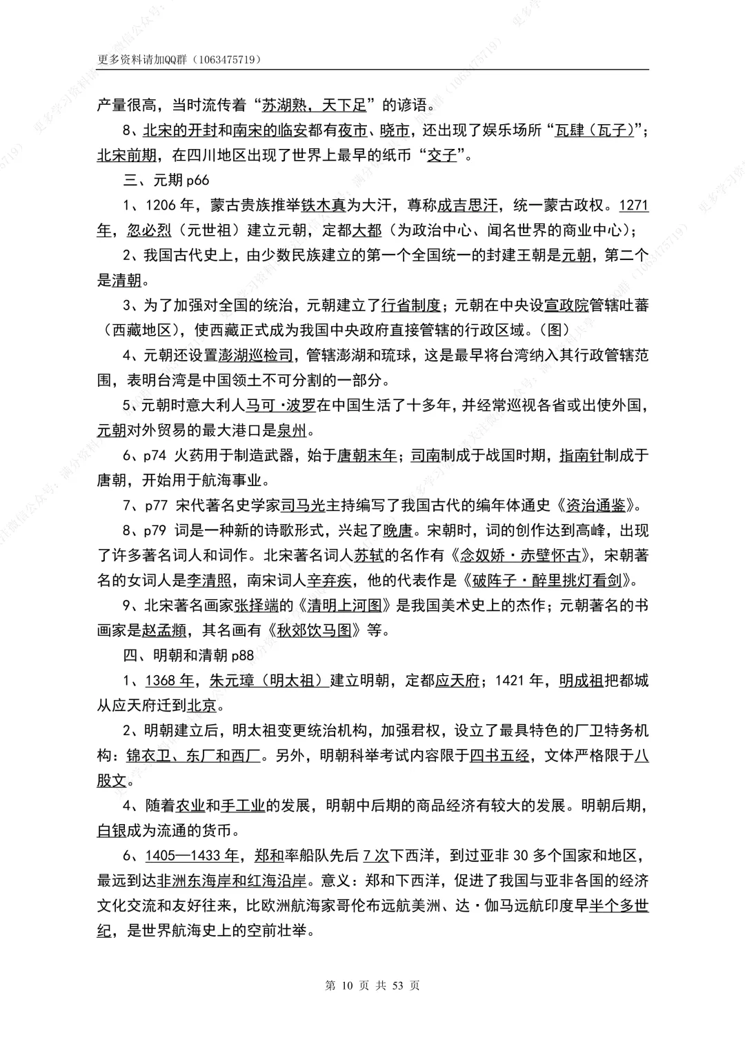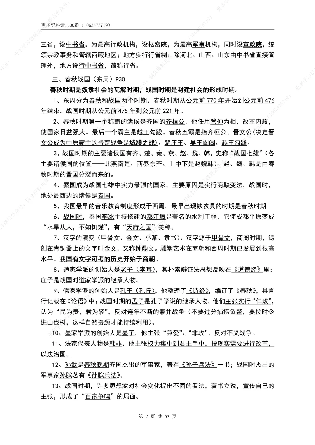 51.初中历史100页学霸笔记,覆盖初中三年知识点!电子档可打印