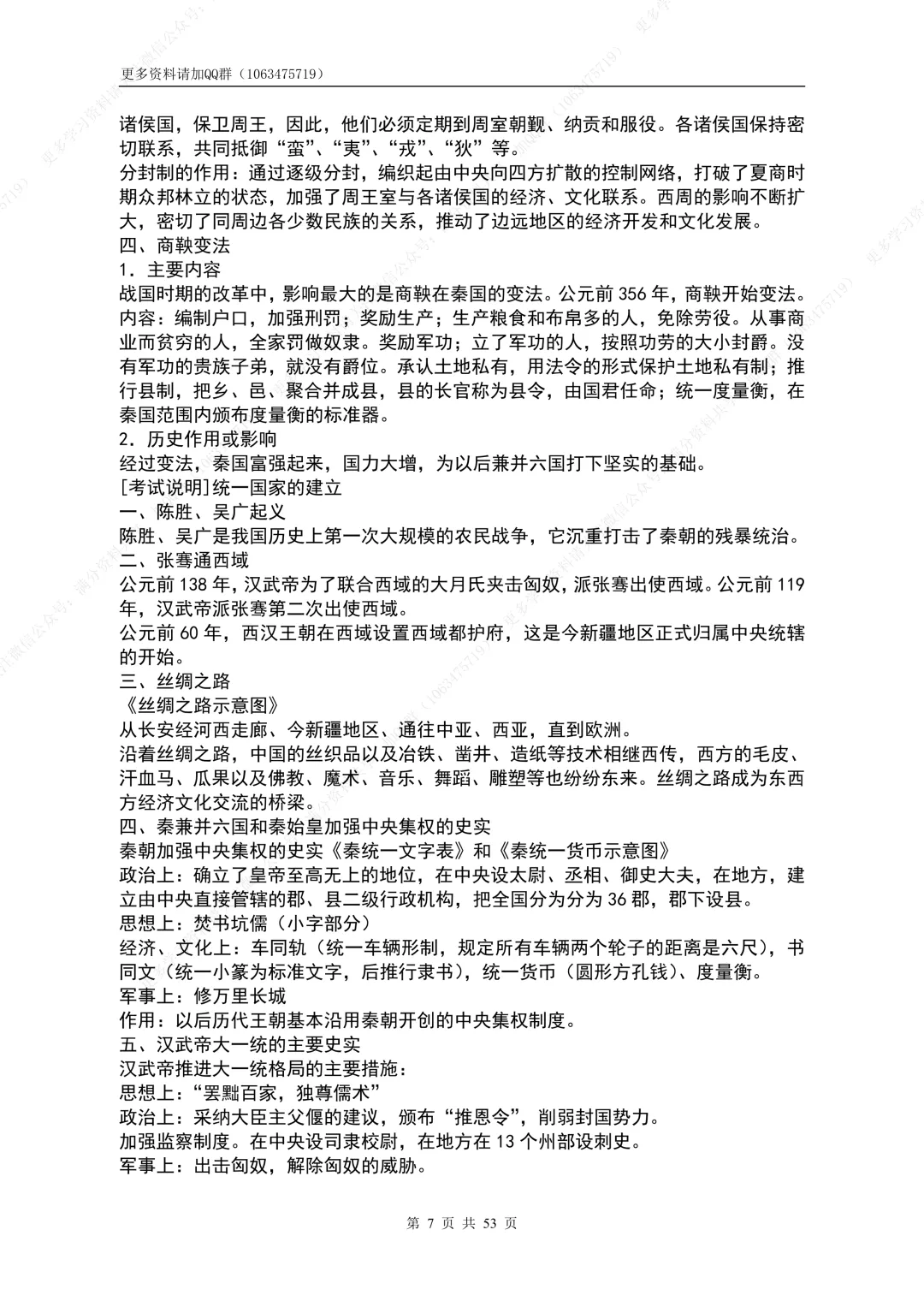 34.七年级历史上册期中考试复习知识(1-3单元),电子版可打印