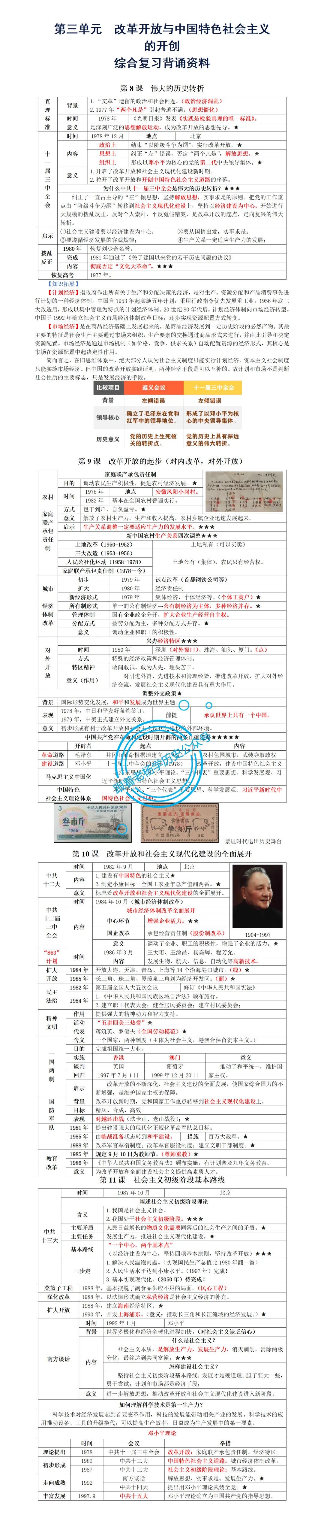 >八年级历史下册第3单元综合复习背诵资料