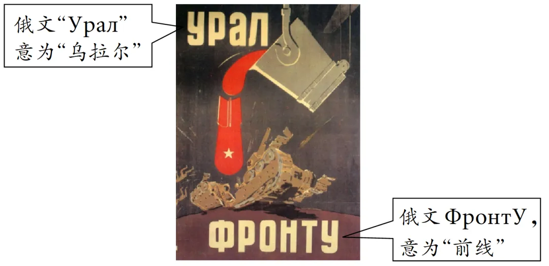 【解析】据所学,乌拉尔是苏联重要的工业地区,宣传画中乌拉尔生产的钢铁被制成炸弹摧毁德军坦克,体现了苏联的工业生产能力转化为战争力量,说明工业化为苏联争取卫国战争胜利创造了物质等条件,故选D项;宣传画描绘的是乌拉尔生产的钢铁制成炸弹摧毁德军坦克,主体是工业生产对战争的支持,而非民众的抵抗意志,排除A项;宣传画突出的是乌拉尔的钢铁生产转化为战争武器打击德军,没有体现苏联为反法西斯战争付出巨大牺牲,牺牲通常涉及人员伤亡、资源损耗等方面,排除B项;1942年,苏德战场形势扭转的标志性战役是斯大林格勒战役,排除C项。