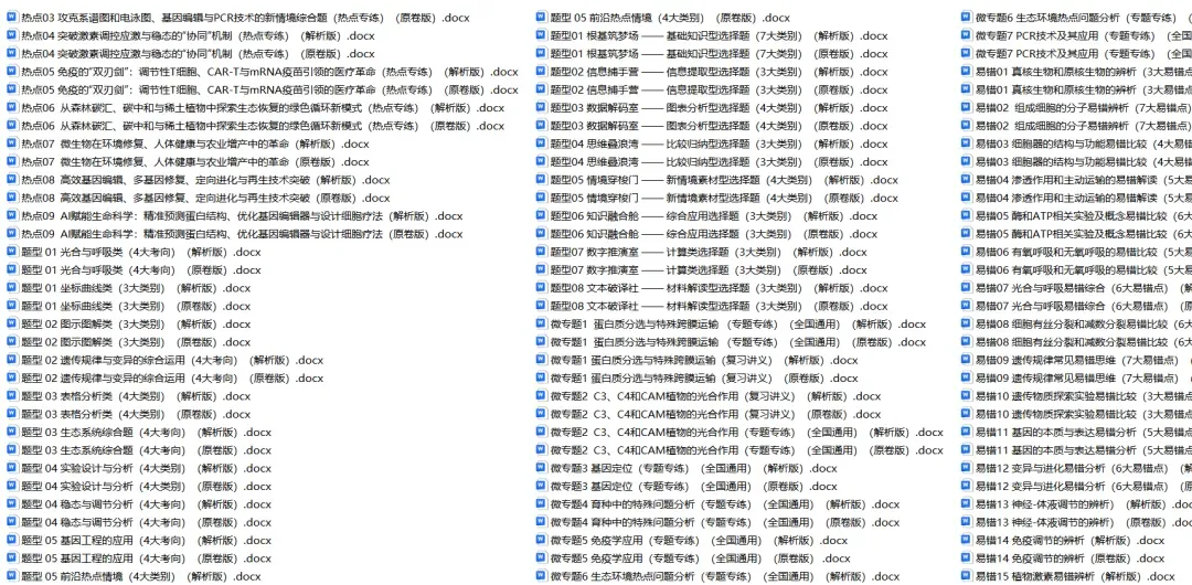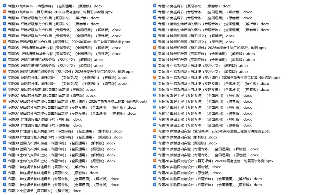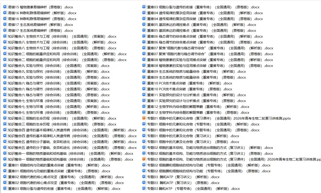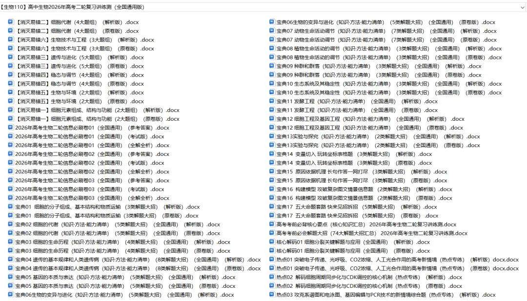 今天小新给同学们整理了高中生物——2026年高考二轮复习讲义+题型练习+综合测试卷(全国通用版)。 家有高中生的家长可以给孩子打印一份。