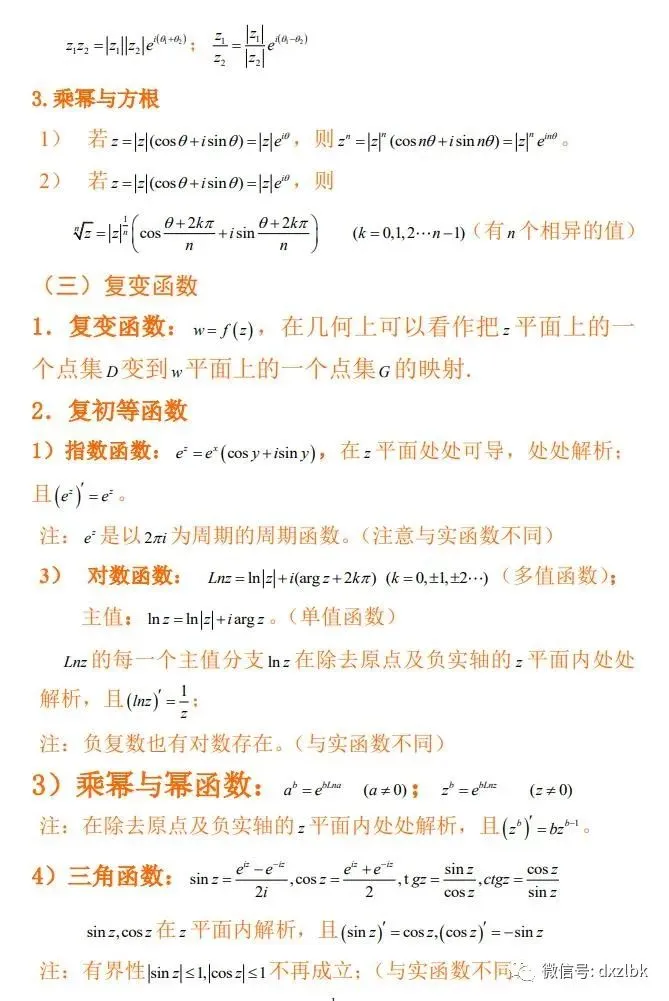 复变函数知识点: