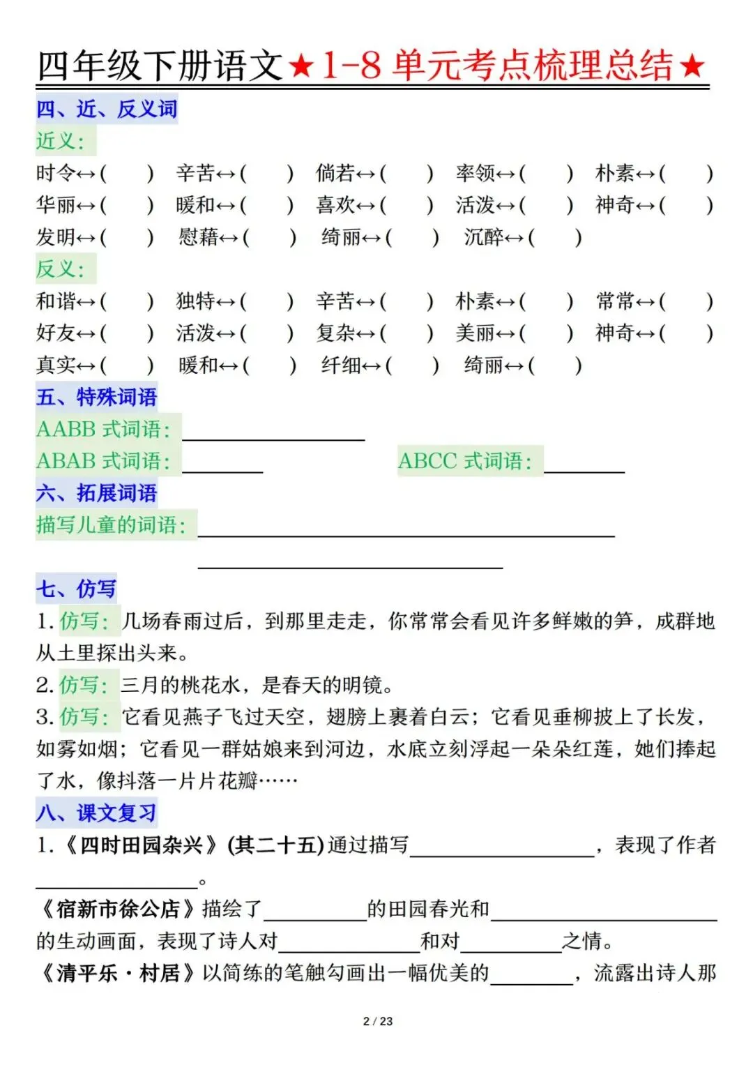 需要的话可以打印出来,安排练习。
