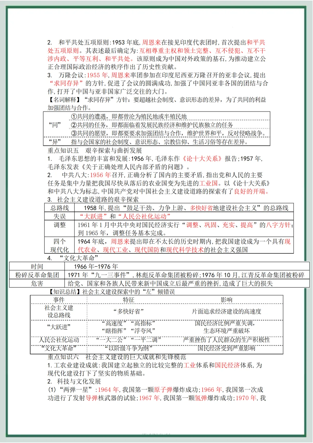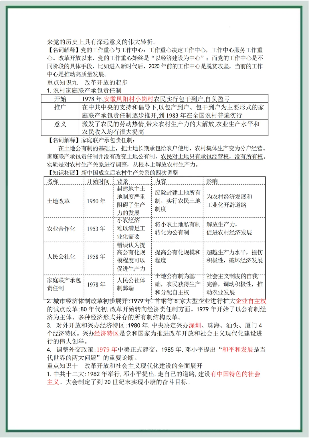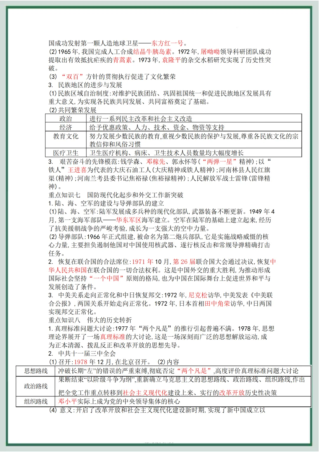 八年级历史下册 第4单元 综合复习背诵资料