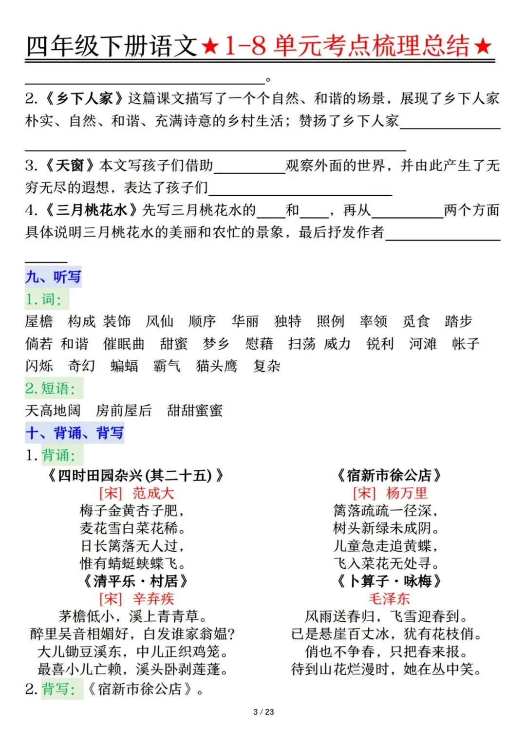 26春四下语文1-8单元知识复习要点(空白+答案46页)