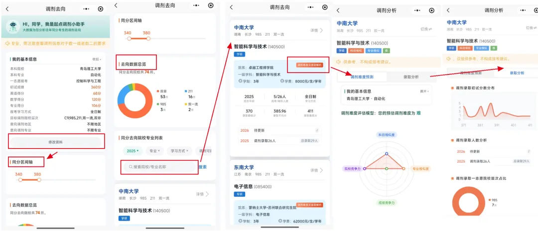 一站式流程导航:从意向采集到正式填报,全流程节点提醒和操作指南,每一步该做什么、注意什么,一目了然,让你调剂路上不迷路。