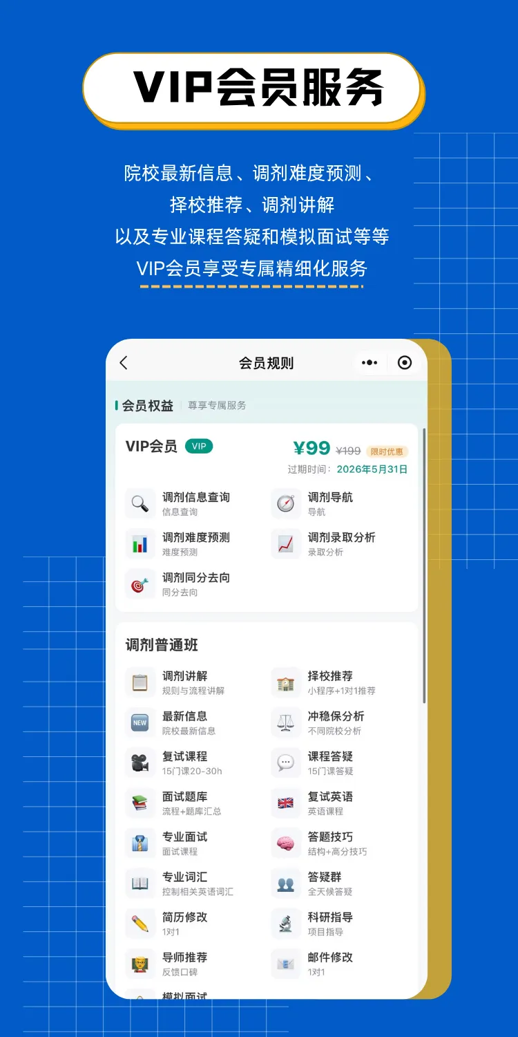 全流程陪伴:从出分到拟录取,有调剂群全程陪伴,有任何问题都能得到专业解答,让你调剂路上不孤单。