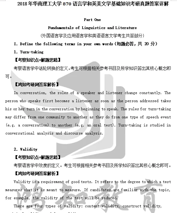 2011-2018年华南理工大学828英语语言文学综合(原870语言学和英美文学基础知识)考研真题答案详解