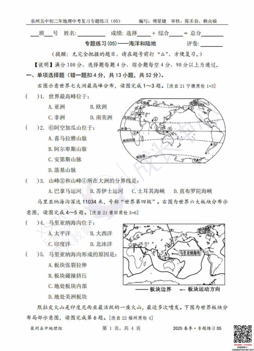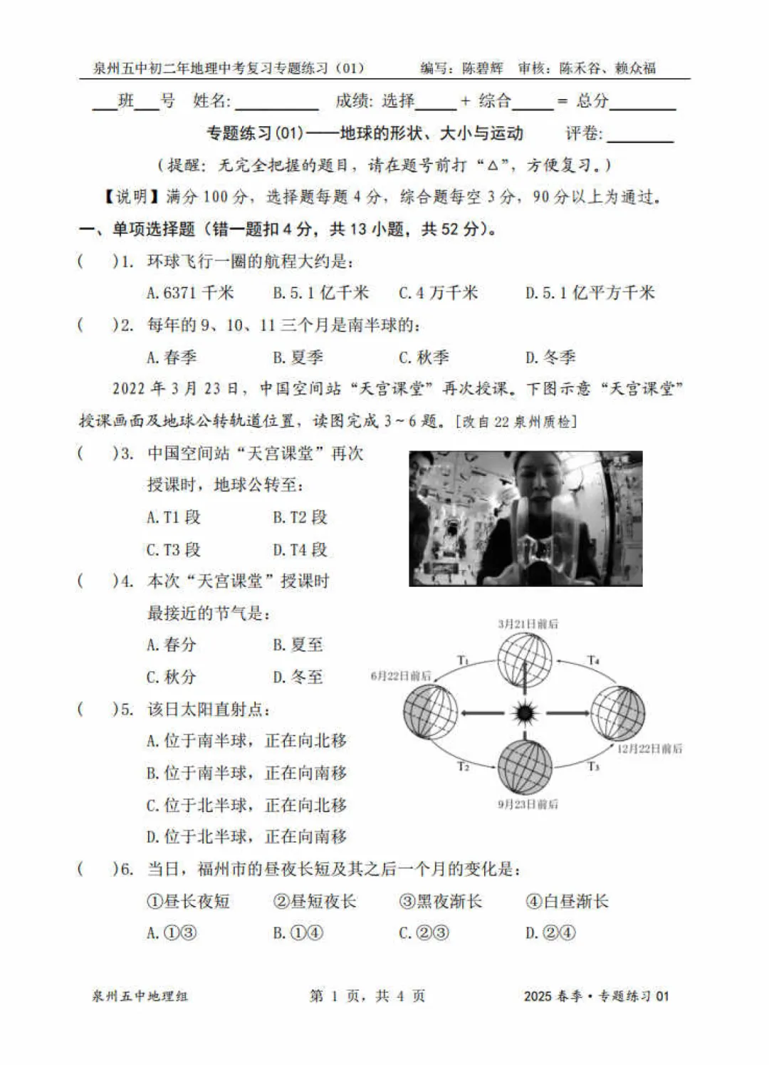 2025泉州地生会考复习资料