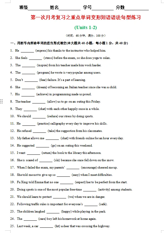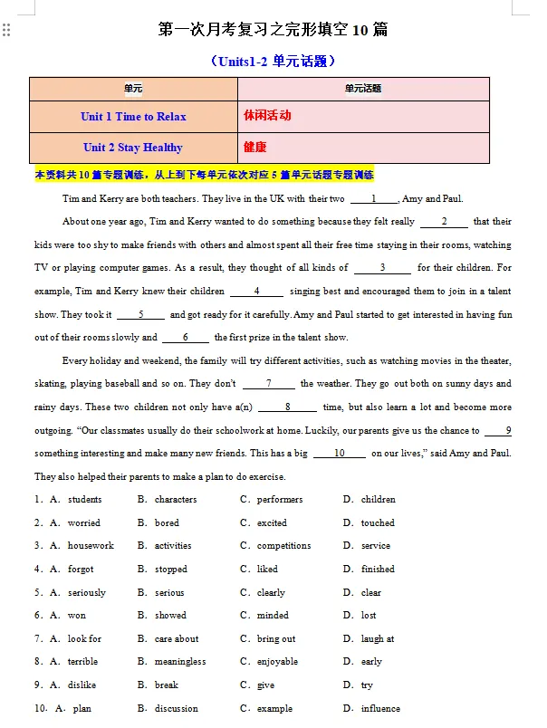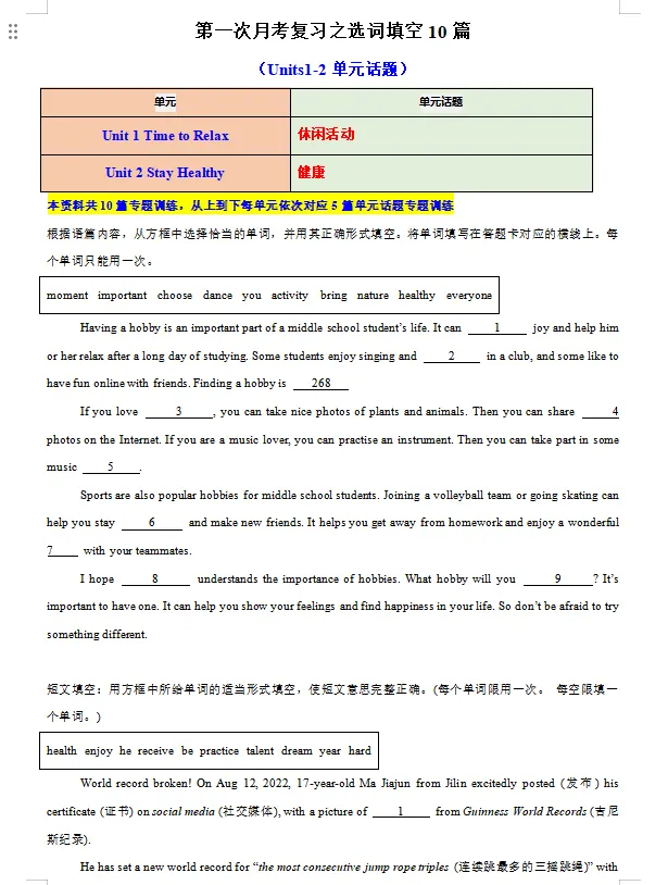 中考英语复习资料汇总:英语中考考前冲刺计划,复习进度安排,中考英语词汇,中考映月重点短语搭配,中考英语语法填空与短文填空