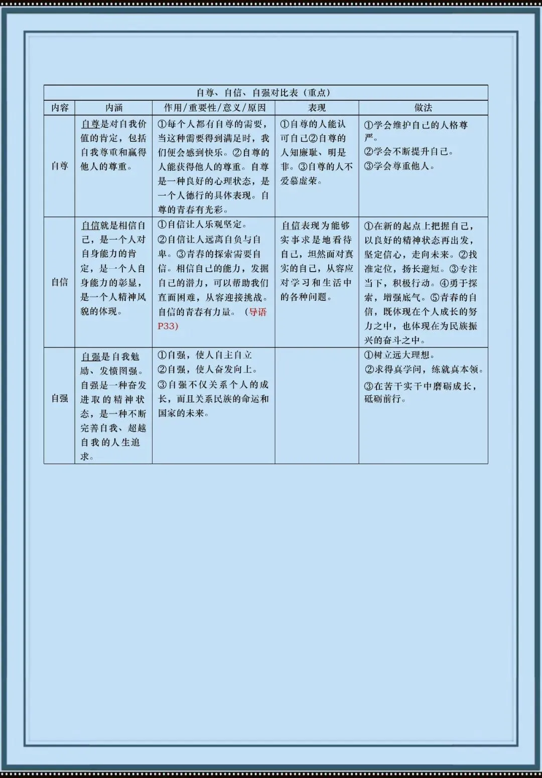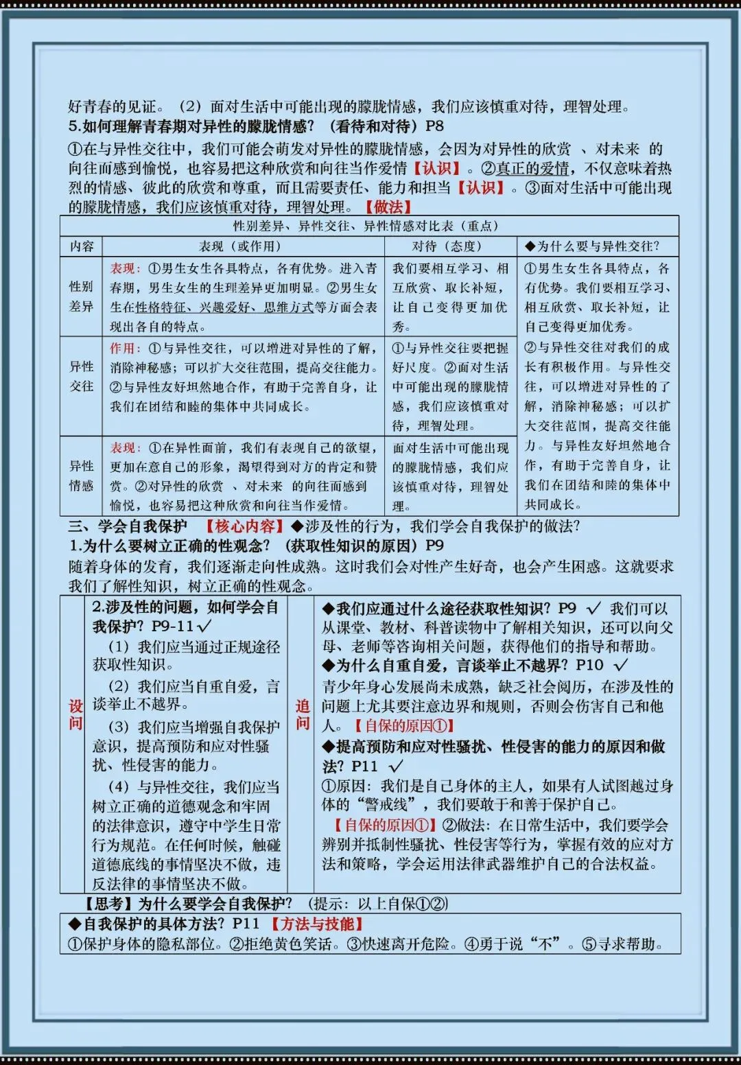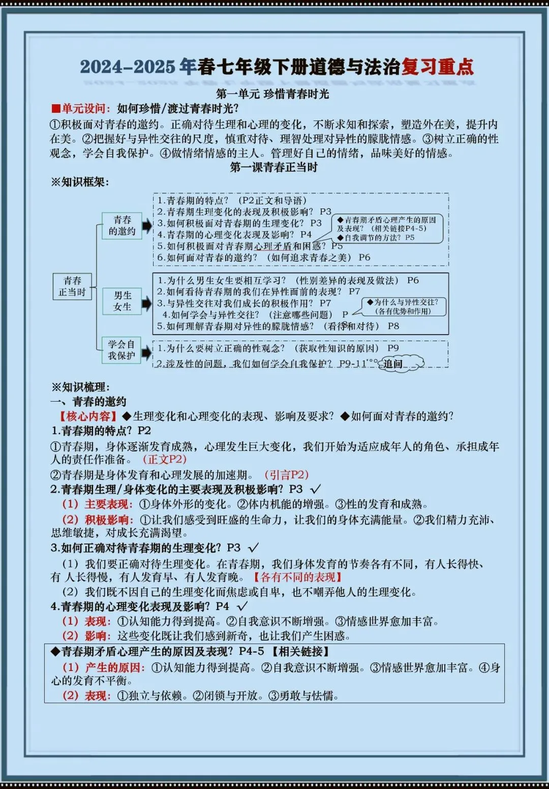今天老师给大家整理了:七年级下册道德与法治复习重点知识点总(电子版可打印)