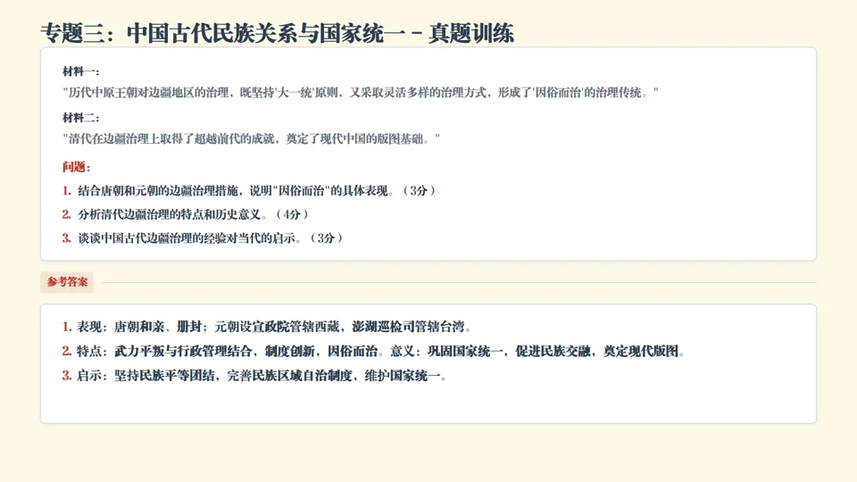 专题三:中国古代民族关系与国家统一